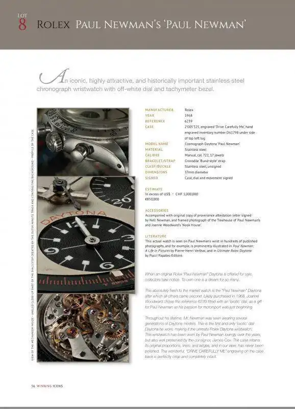 El primer Rolex de Paul Newman, uno de los 5 Daytonas que se le conocen, es un objeto del deseo no sólo de los mayores coleccionistas y mega-dealers del mundo. Es también objeto del deseo de fanáticos del cine y artistas, personalidades del mundo de las carreras, inversores puros y duros y yo creo que la misma Rolex podría pujar por esta pieza.