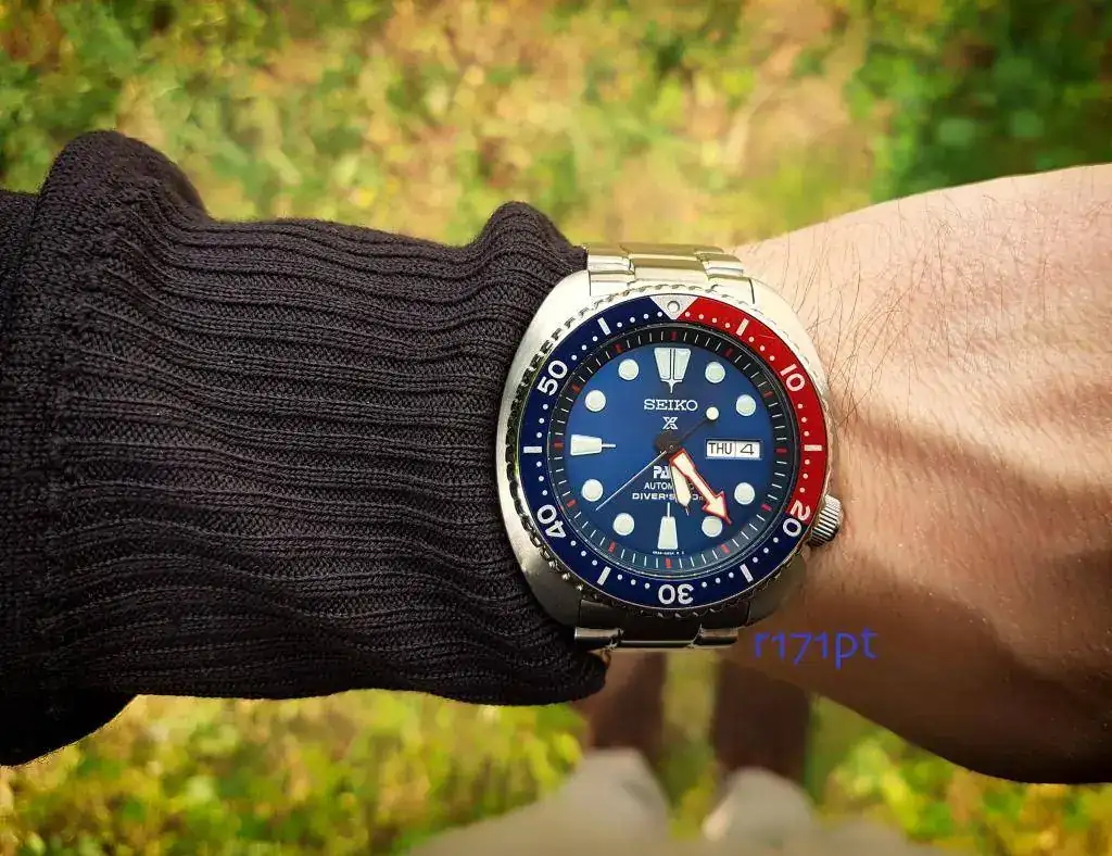 Uno de los preferidos de nuestro foro en 2016, que dispensa cualquier introducción. Durante mucho tiempo no lo quise, por era moda y no me gustan ese tipo de cosas. Sin embargo hace unas semanas vi en la relojería el Blue Lagoon. Como no terminó de convencerme su esquema de colores lo dejé. Pero hace bastante que quería aumentar mi numero de divers Seiko, ya que me gustaría tener uno de cada, por lo cual encargué uno y aquí lo tenemos. Nunca pensé que me gustase tanto, por comodidad y versatilidad. El dial es simplemente de los mas bonitos que tengo. Cuantos matices tiene ese azul?
