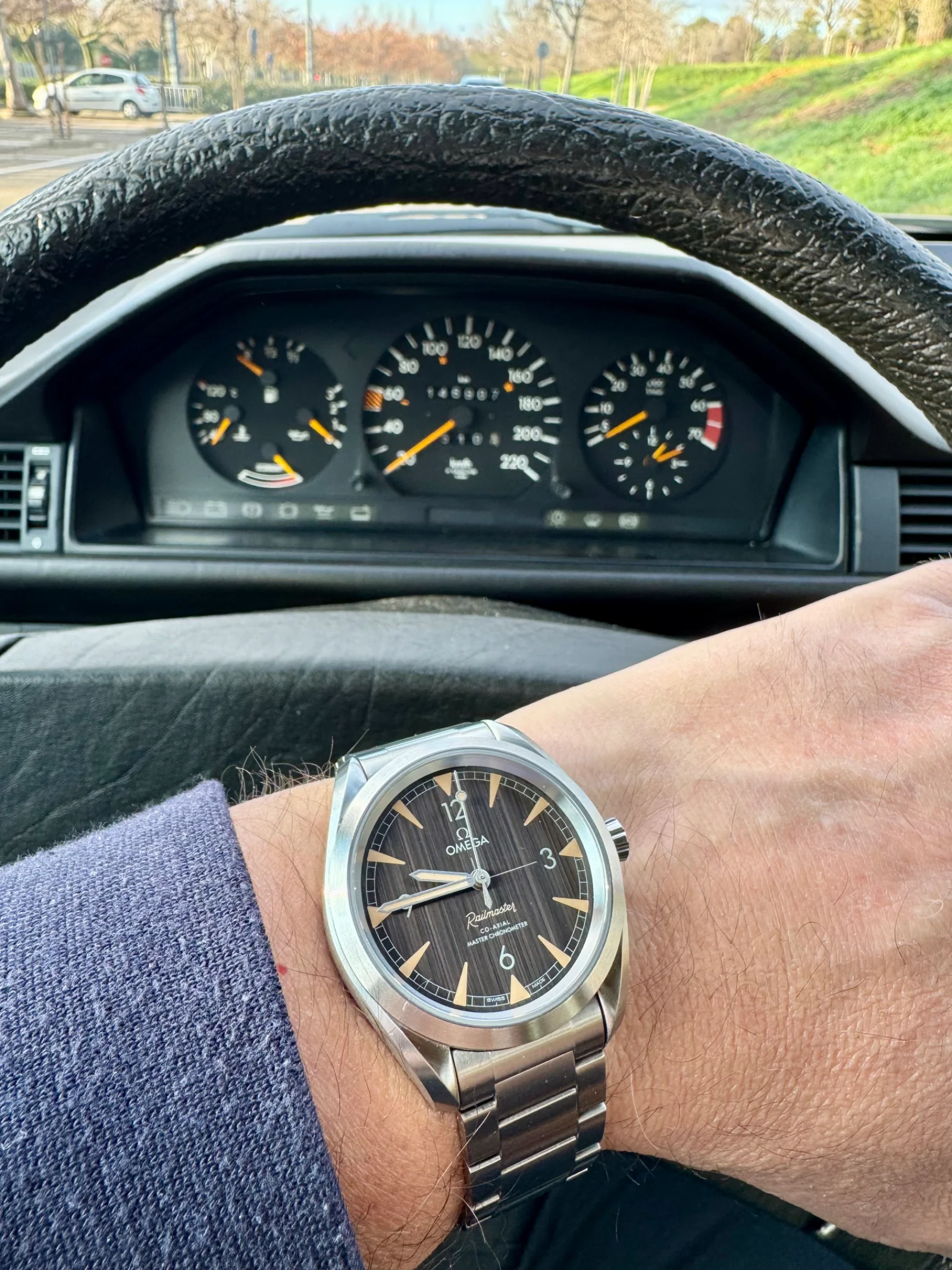Vuelvo a poner mi foto con mi clásico Mercedes W124, por supuesto estacionado en el parque Juan Carlos I de Madrid.