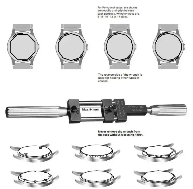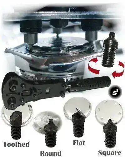 Son cómodas y socorridas, y para relojes con las muescas dañadas y divers profesionales grandes son bastante útiles. Su rango llega hasta más de los 60 mm. Mandan bastante fuerza y permiten pares de apriete muy altos, si bien tienen a machacar las juntas debido a que si no controlamos la fuerza, la presión las deformará con el tiempo. No es demasiado problema si tenemos la costumbre de aceitar y cambiar juntas cada vez que abrimos. Recomendable de todo punto si el reloj es un diver destinado al buceo, dado que en una emergencia puede salvarnos la vida.