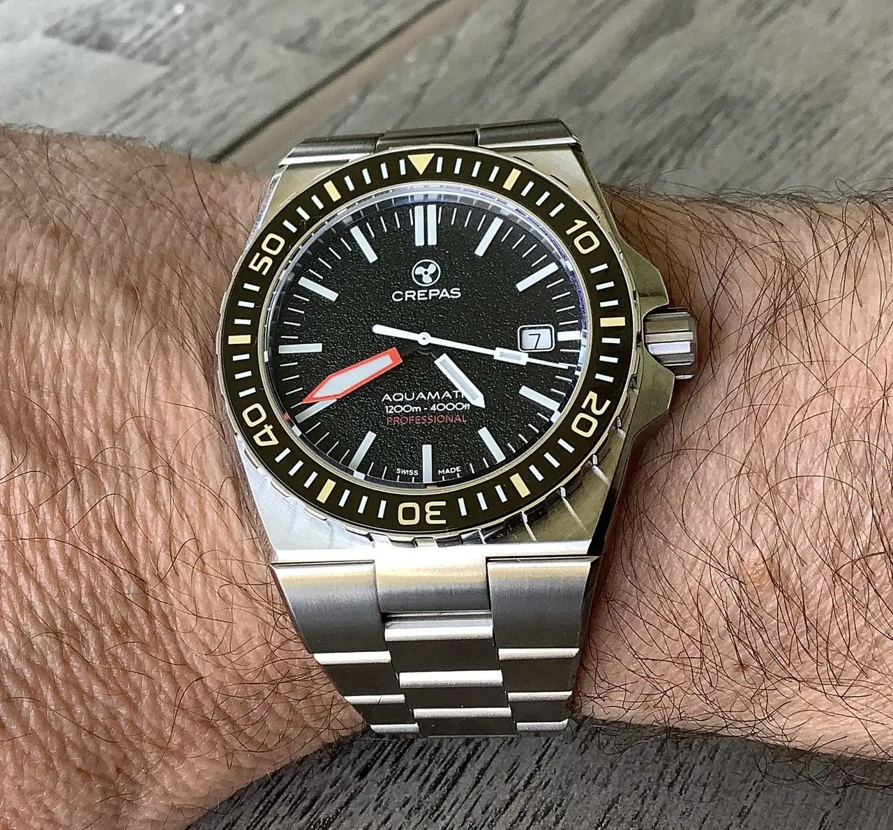 Muy bonito. Creas es ejemplo de como hacer las cosas bien. EnhorabuenaJusto hoy me llegaron dos relojes que compré en 2024. El IXDAO y el Crepas Aquamatic 1200. Ya puse un hilo del IXDAO así que desgraciadamente las comparaciones perjudican bastante al Chino. El crepas es otra cosa. La calidad de construcción, solidez, movimiento del bisel. Hay algunos puntos del crepas que me gustan más de lo que pensaba. El tamaño es bastante contenido ( o así se siente). Teniendo una muñeca muy delgada pensé q podía quedar grande pero lo siento muy bien. El bisel de zafiro pensé que no me iba a gustar pero me gusta mucho. El dial texturado es muy bonito también. Lo malo: el reloj es bastante pesado así que no se como será usarlo un día completo jajaja. Todo lo demás me encanta. Este reloj se parece bastante al Doxa sub 600T i que tu el que vender por lo incómodo que era, pero este siendo más grande se siente mucho mejor ( es algo así como 3 mm más delgado en todo caso. Feliz con este diver, el único que tengo ( bueno tengo 2 si cuento el IXDAO) ya que me pasa seguido que no logran convencerme y los vendo. Ya veremos….