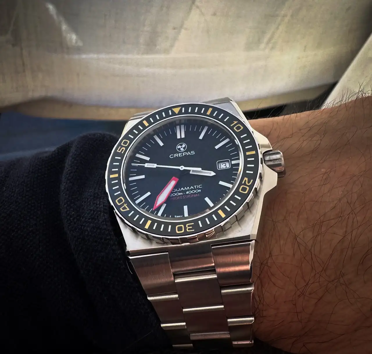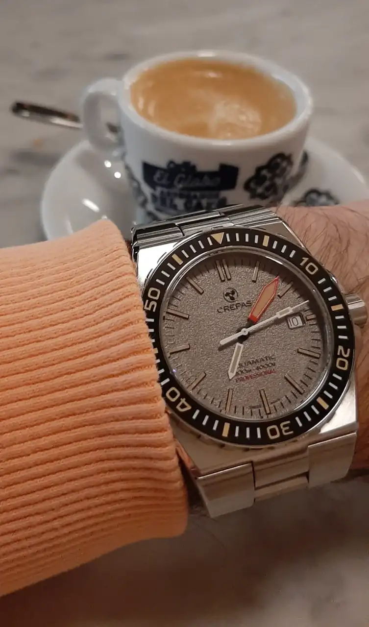 muy bonitos los Crepas Aquamatic. Alguien sabe lo que pesa el reloj. Es muy pesado en la muñeca?