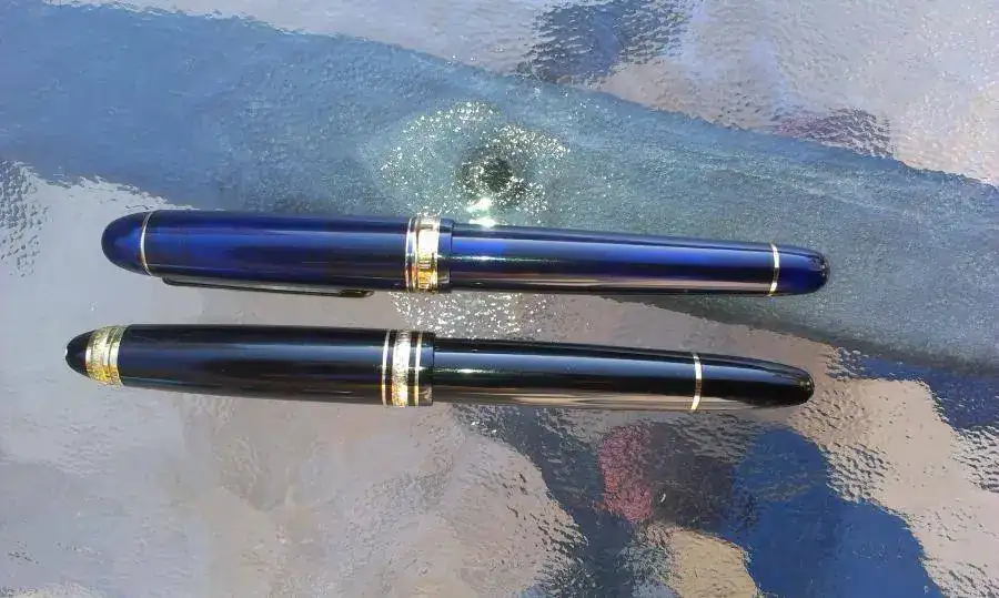 Yo voy a hacer algo más. Os pongo un par de fotos con y sin capuchon al lado de mi Mb 146 75 aniversario...como veis....milimetros, si acaso 2 o 3 mas corta (es mas corto el cuerpo pero mas grande el plumín) y casi igual en diametro :D (un pelín mas ancha la MB...si acaso 1 mm no mucho mas)...Siiiii ya lo sé...estas cosas no se hacen!!!:D