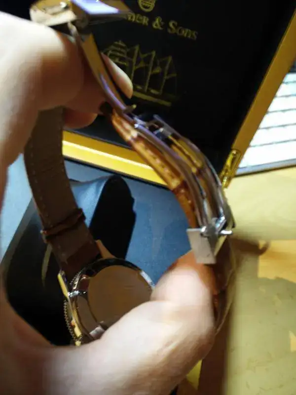 Pequeño unboxing- La caja viene acompañada de una bolsa de piel o ante de color marrón y en el que caben 4 relojes.