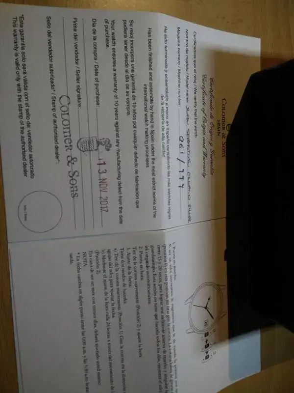 La caja de cartón contiene otra caja interior de no sabría decir qué clase de material, bastante grande para lo poco que lleva. Reloj y 2 hojitas de instrucciones.