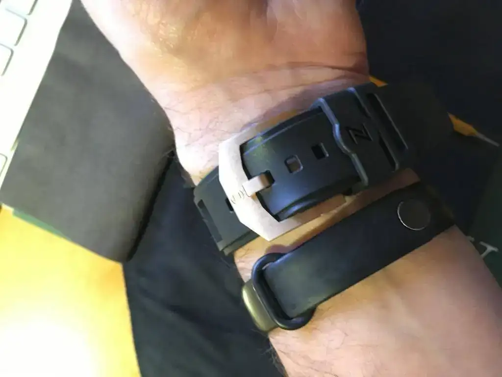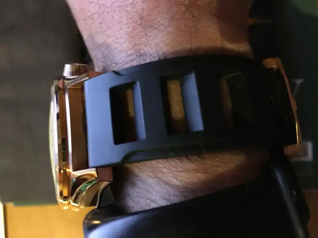 El reloj es muy contundente, pesado, correa de goma ancha y flexible pero robusta.