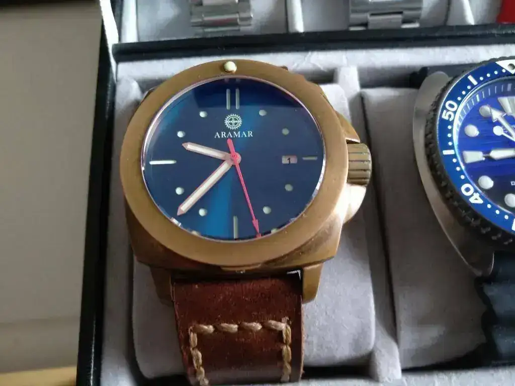 Abajo a la izquierda el bronce de la micromarca holandesa Aramar con corazón de Seiko.