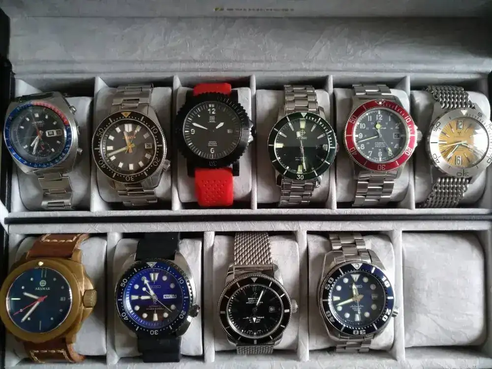 A éstos tengo que añadir un Seiko helmet blanco y un snkl43 azul que comparto con mi señora.