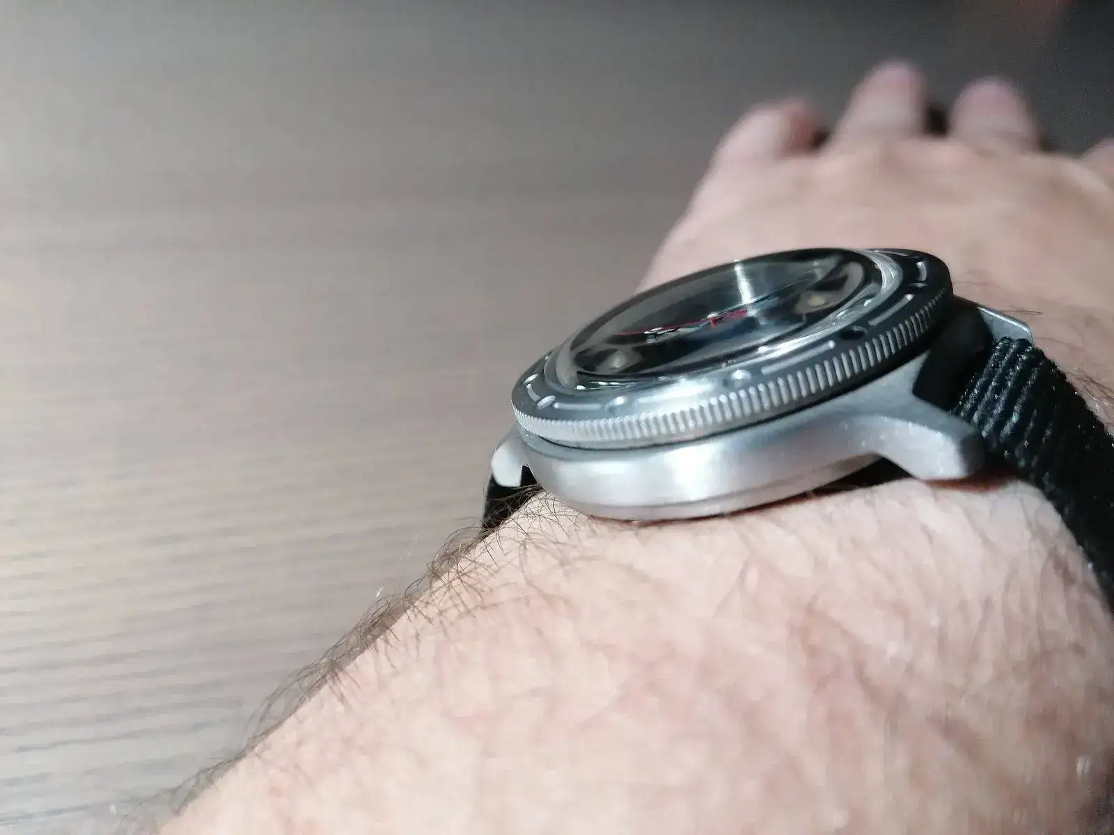 Pongo alguna foto, el mío es completamente de acero, el ácido solo sirvió para quitar el cromado. Este dial ya lo tengo en otro reloj así que estoy buscando un díal nuevo, puede que le pegue uno grisáceo o metalizado. Y de paso otras manecillas.