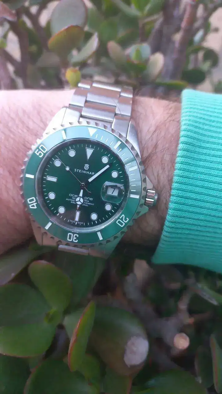 Llegó la Navidad y con ella el regalo que estaba esperando, mi queridisima esposa se ha estirado y ha negociado con Santa Claus para que me trajera ese "green" que tanto me gustaba. Un Steinhart Ocean One Doble-GREEN premiun con bisel ceramico y un verde precioso que os muestro en las fotos de presentación. Muy contento y feliz con esta nueva entrada.