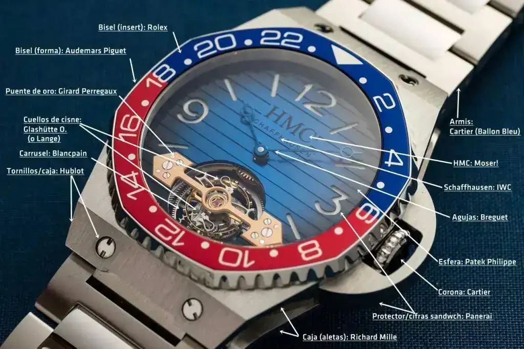 Juer, soy tan de letras que ni contarHabía visto 8: Breguet, PP, Panerai, Rolex, IWC, AP, Hublot y Lange (en el tourbillon). No había alcanzado a ver el cabochon de Cartier en la corona ni a distinguir el brazalete de GP