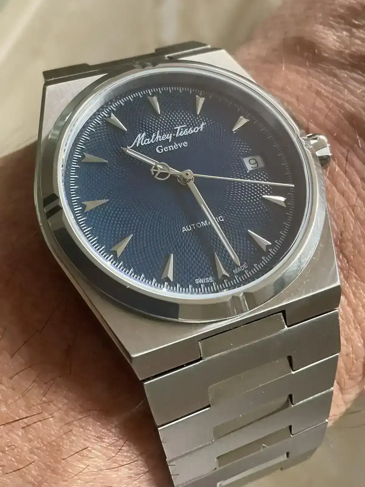 Lo llevan algunos modelos de marcas Suizas de gama baja, por ejemplo Mateo (Mathey) Tissot , que suelen verse bastante en subasta por Catawiki y se venden a menos de 200 euros nuevos, sin precio de reserva.