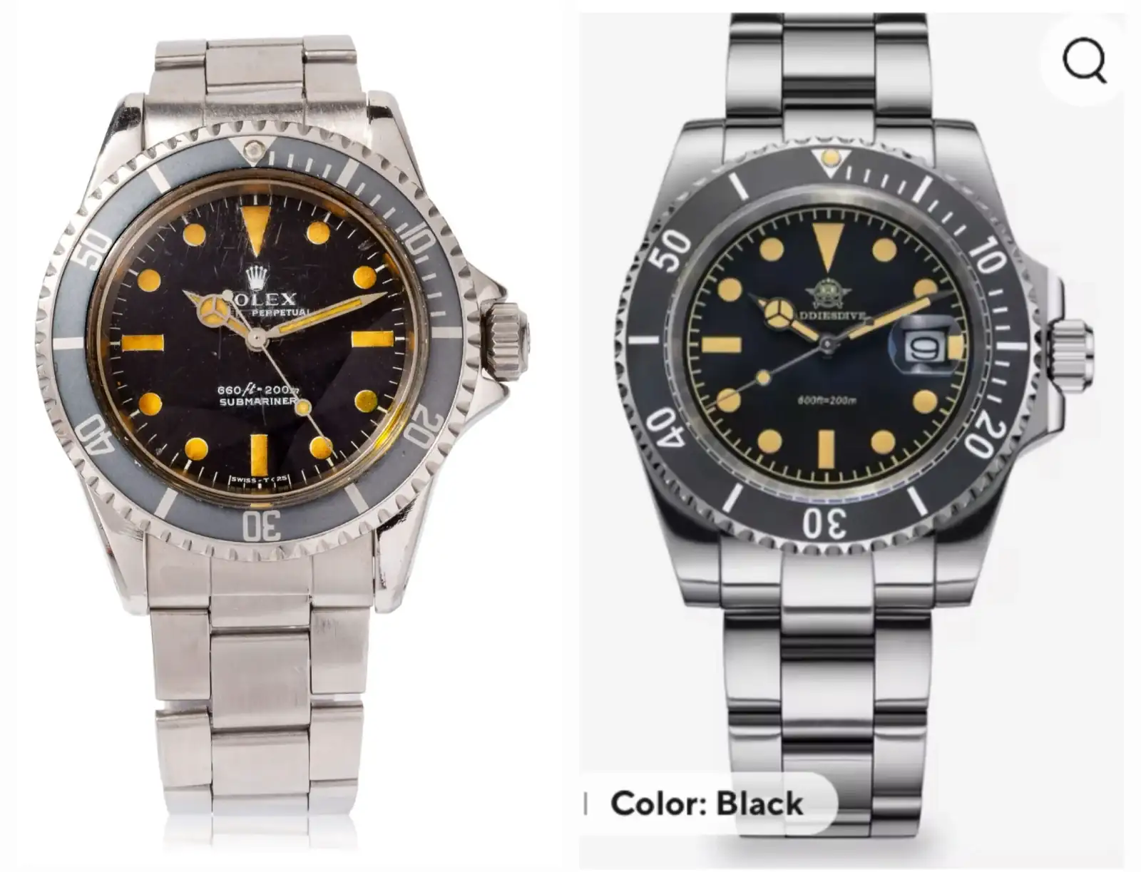 El guardacoronas y la corona enormes, las asas son gordisimas. Pero es que no se qué modelo está copiando. Por el uso del lumen old radium y el bisel gris entiendo que copia un 5513 ghost bezel? Me falta conocimiento de Rolex vintages, no me se las referencias