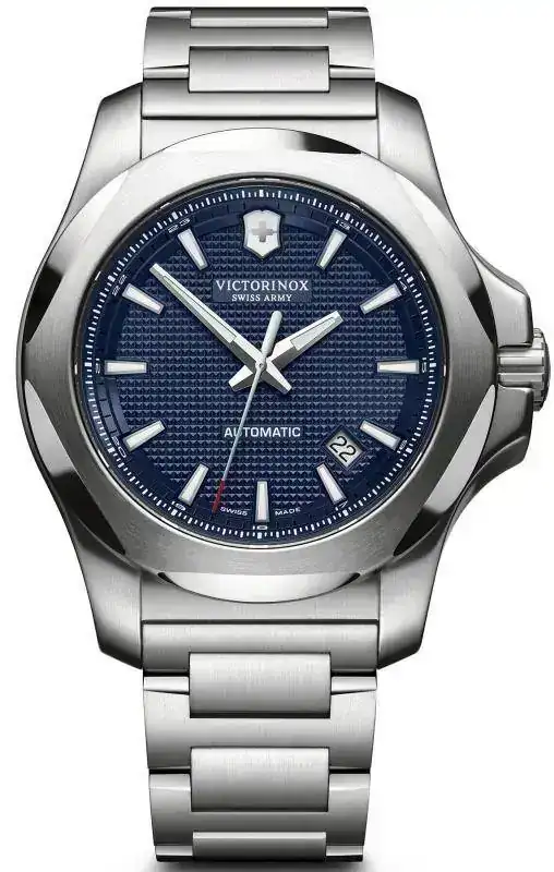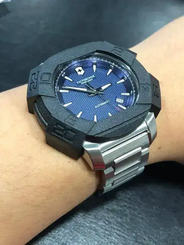 Se trata de un Victorinox INOX. Mechanical 43mm 200M Bracelet Ref. 241835 con el archiconocido Calibre ETA 2824-2 (+/- 38 hs de RM ) es una marca que me gusta bastante, tengo 2 ya y uno con este mismo calibre, no es muy preciso esta en unos 5/6 seg/dia pero bueh, rara vez uso un reloj mas de 2 o 3 días así que eso no es problema..
