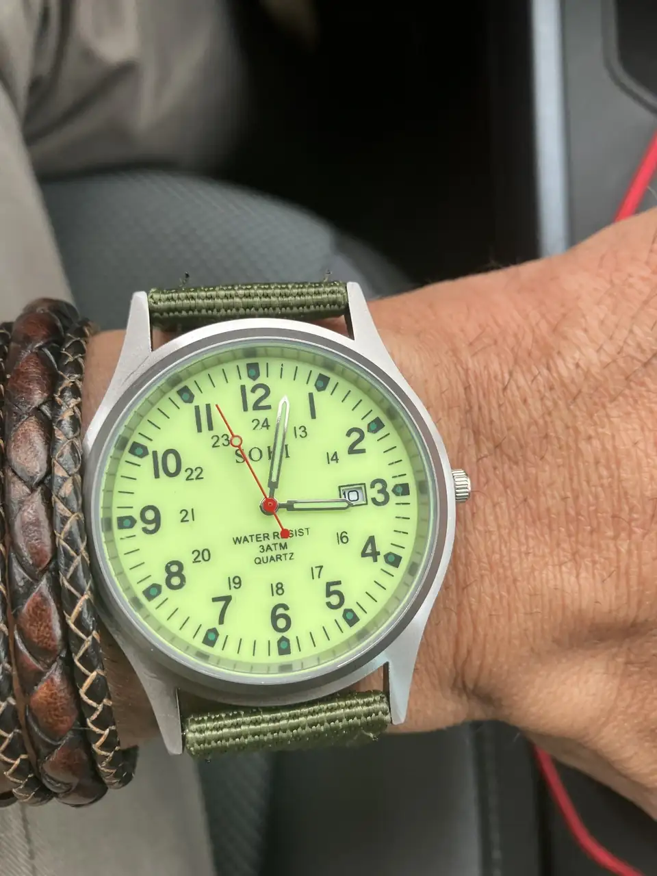 Ese mismo lo compré no hace mucho a 1,79 euros y funcionaba.Aquí lo tengo: 4€. Chino y funcionando, con esfera “radiactiva”. El tictac sonando a todo volumen. Vino con la corona bloqueada. Caja de aleación X, cristal de plexi y una correa realmente buena.
