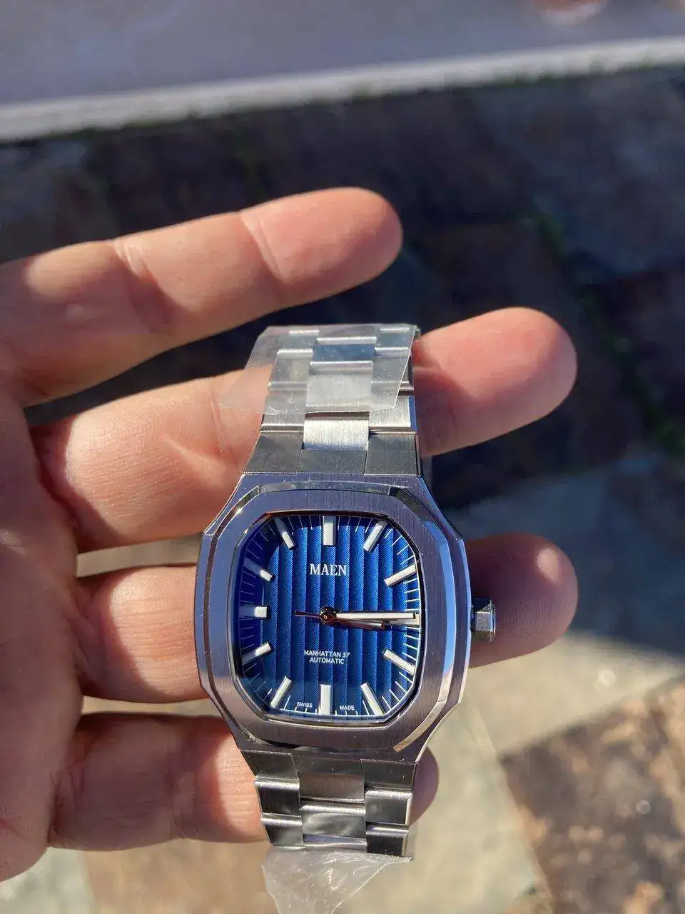 Cuando se oscurece me parece gris antracita, casi negro, pero mate. Muy legible, equilibrado, un acierto sin la ventana de fecha (mi preferencia, lo bueno de MAEN es que puedes elegir “date” o “no date”).