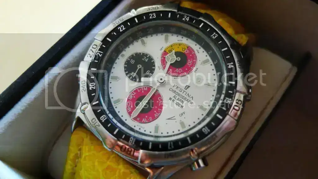 Festina Swiss Made mecánico de mi abuelo paterno al que no conocí, pero que recuerdo desde mi más tierna infancia en la muñeca de mi abuela. Mi padre me contó que fué de los pocos caprichos que mi abuelo se permitió en su vida. Es un reloj muy presente en mis imágenes de pequeño. Al fallecer mi abuela, mi padre me lo regaló. Llegó a mis manos sin funcionar y en mal estado. El amigo Enrique lo dejó en perfecto estado de marcha, y lo uso sin problemas a pesar del tamaño y el armis flexi de esos "depila muñecas"..