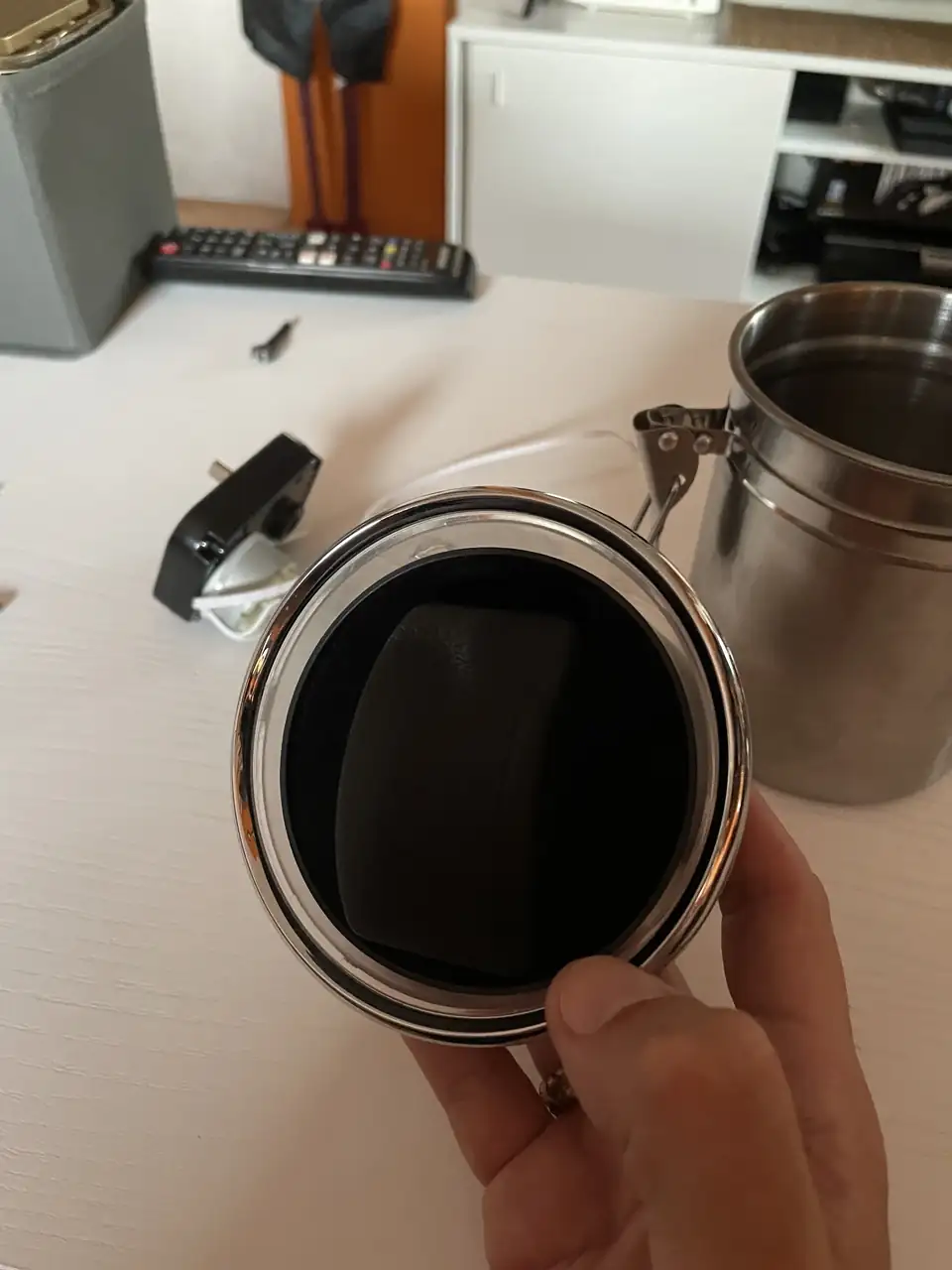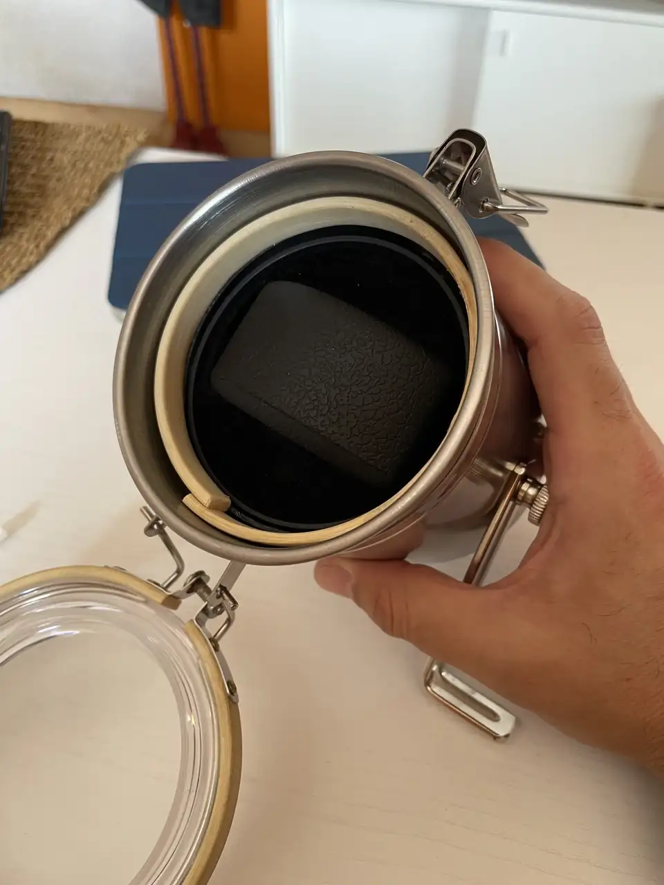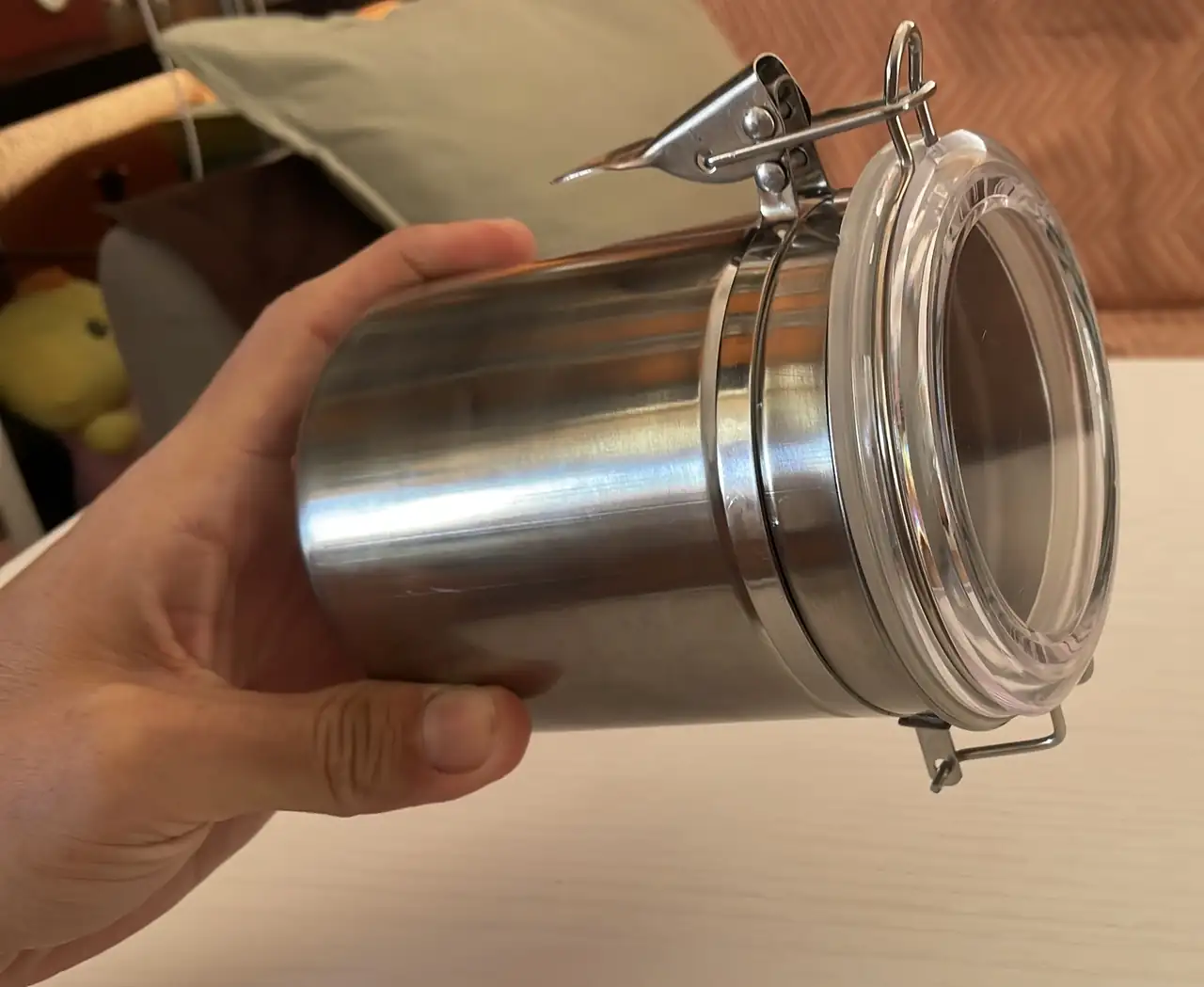 Ahí que me vestí y baje al chino de abajo de casa y dio la casualidad que encontré el elemento perfecto, un bote hermético de los que tenemos en la despensa con la pasta y las legumbres