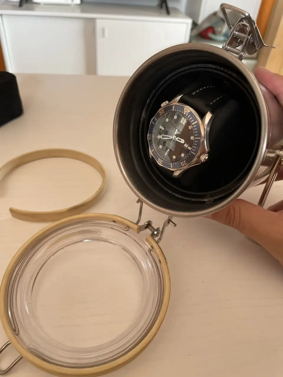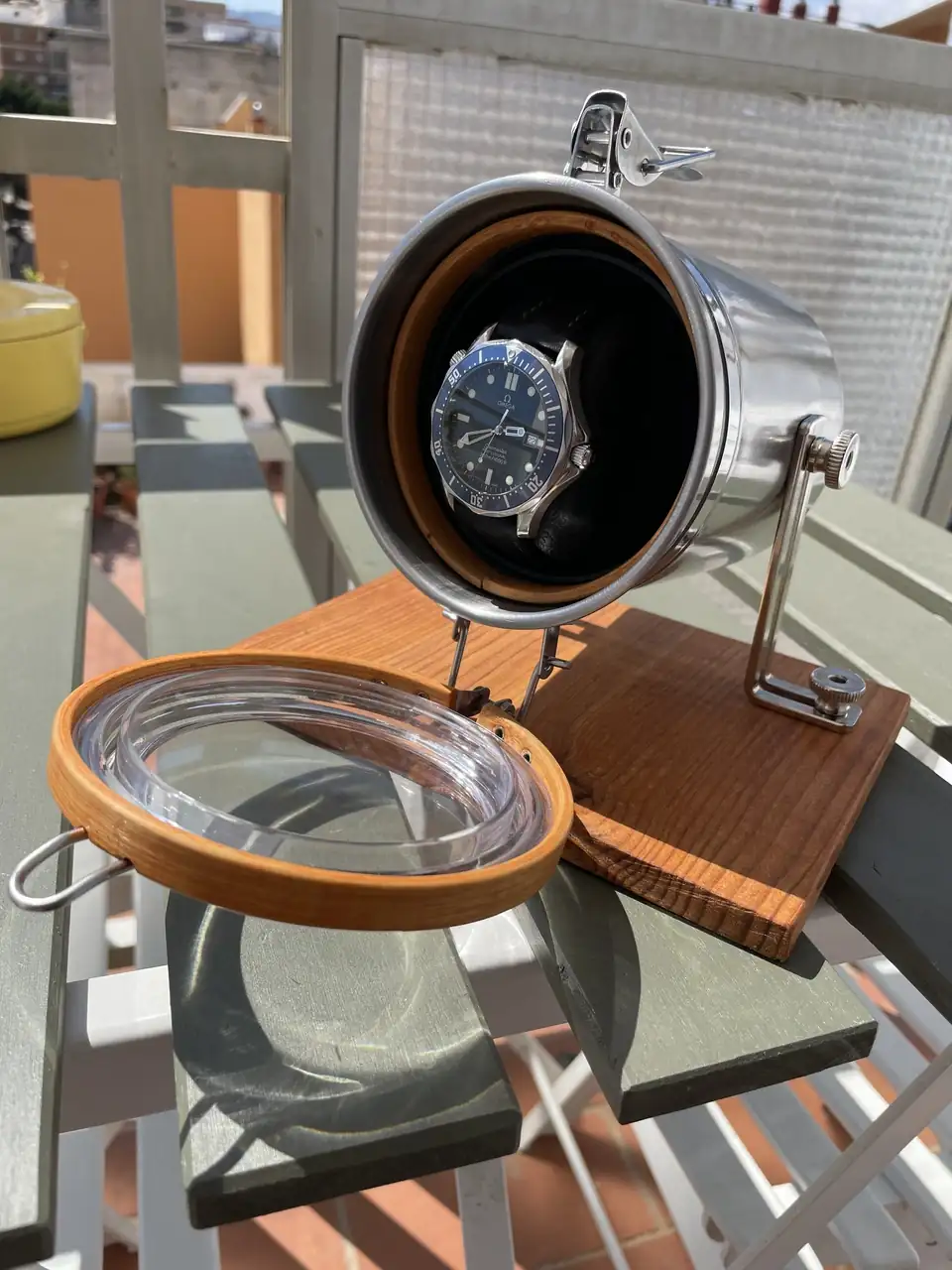 El resultado me gusta, creo que has conseguido lo que tenías en mente. Personalmente me recuerda a los ojo de buey de los barcos, así es que resulta perfecto para exponer un Diver, y creo que si lo hubieras hecho watchbinder te habrías coronado![]()