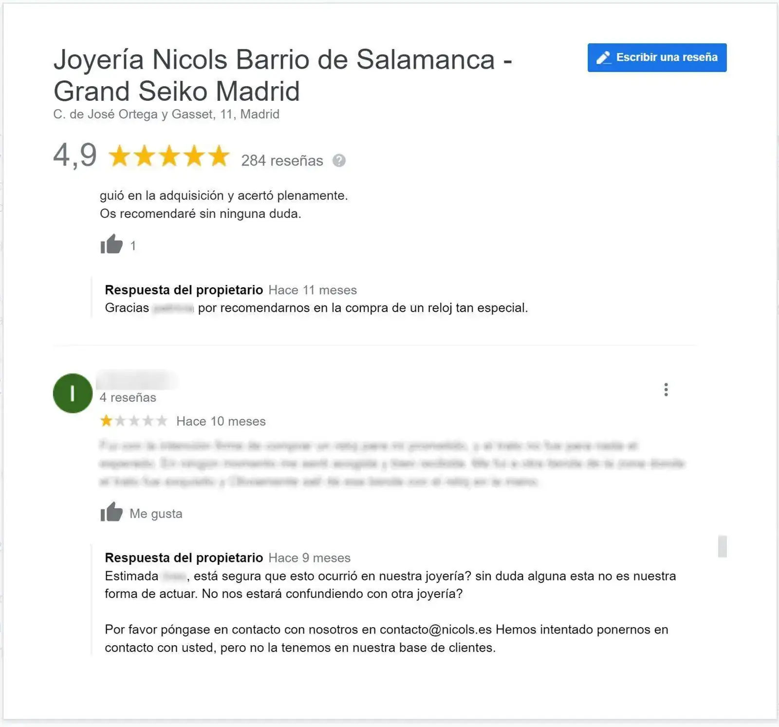 Respecto a la explicación en si, a mí tampoco me ha parecido la apropiada. Es mucho más elegante inventar una excusa/disculpa por la que ese reloj no podía ser enseñado, e invitar al OP a una visita "especial", que venir aquí a decir que ha revisado la grabación y miente (porque es muy fácil decirlo, pero no dar ninguna explicación o detalle de en que miente... es aquello de "tira la piedra y...". Personalmente, al OP sólo le "conozco" virtualmente, y después de años de coincidir aquí con él, tampoco me parece que sea de los que van inventando historias para desprestigiar a establecimientos reconocidos. De hecho, el OP no ha podido ser más elegante de lo que ha sido, ya que el nombre del establecimiento no surgió nunca de sus "dedos", hasta que otros compañeros lo dedujeron y teclearon.