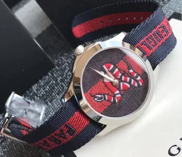Caja de acero, esfera de nailon con estampado azul y rojo con motivo Kingsnake bordado