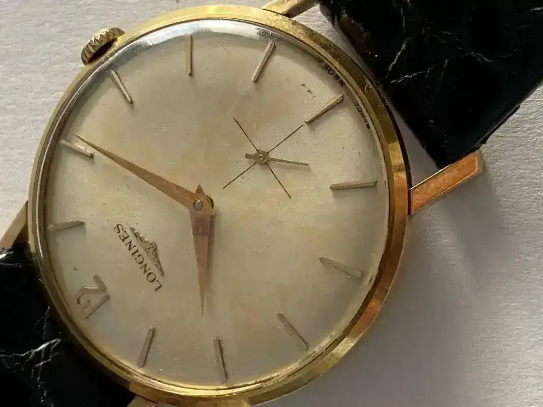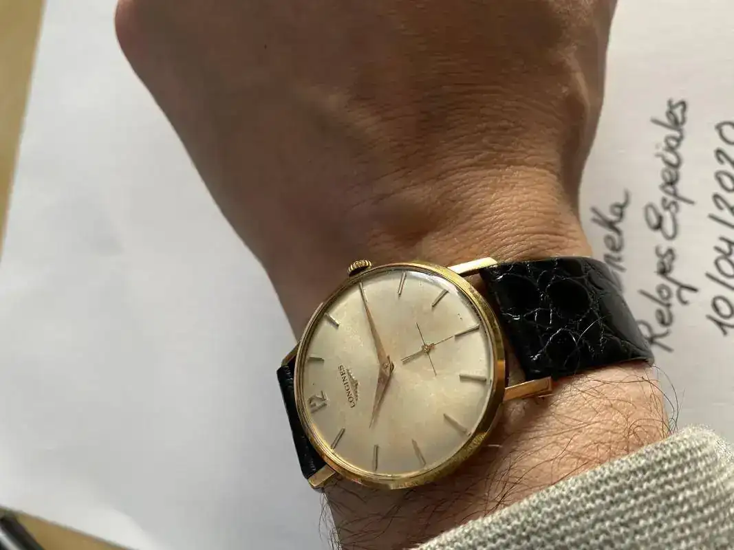 Buenas tardes. Pongo en venta este elegante Longines. Fué comprado por mi abuelo en los años 50. Caja de oro macizo de 9k, Todo original excepto correa (Hirch cocodrilo legítimo). Funciona de maravilla aunque seguro que un aceitado no le vendría mal( no sé si alguna vez se ha llevado al relojero. Muestra signos normales de la edad en la esfera aunque la caja está perfecta.