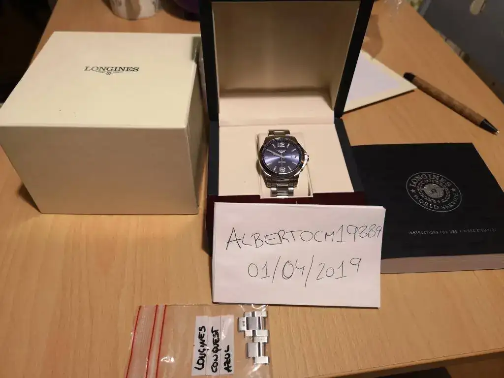 pongo a la venta debido a la entrada de otro reloj en el mismo tono de azul. El reloj está en buen estado, con los tipicos pelos en las partes pulidas a espeja pero ninguna marca importante y nada en el cristal.