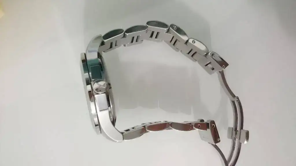El estado del reloj es francamente bueno. Caja y cristal impecables. El armis es mas delicado, más aun cuando lleva los eslabones centrales pulidos a espejo, pero a pesar de eso, no tiene ningún arañazo de importancia, simplemente los tipicos pelillos o micro-rayas, que son inevitables.