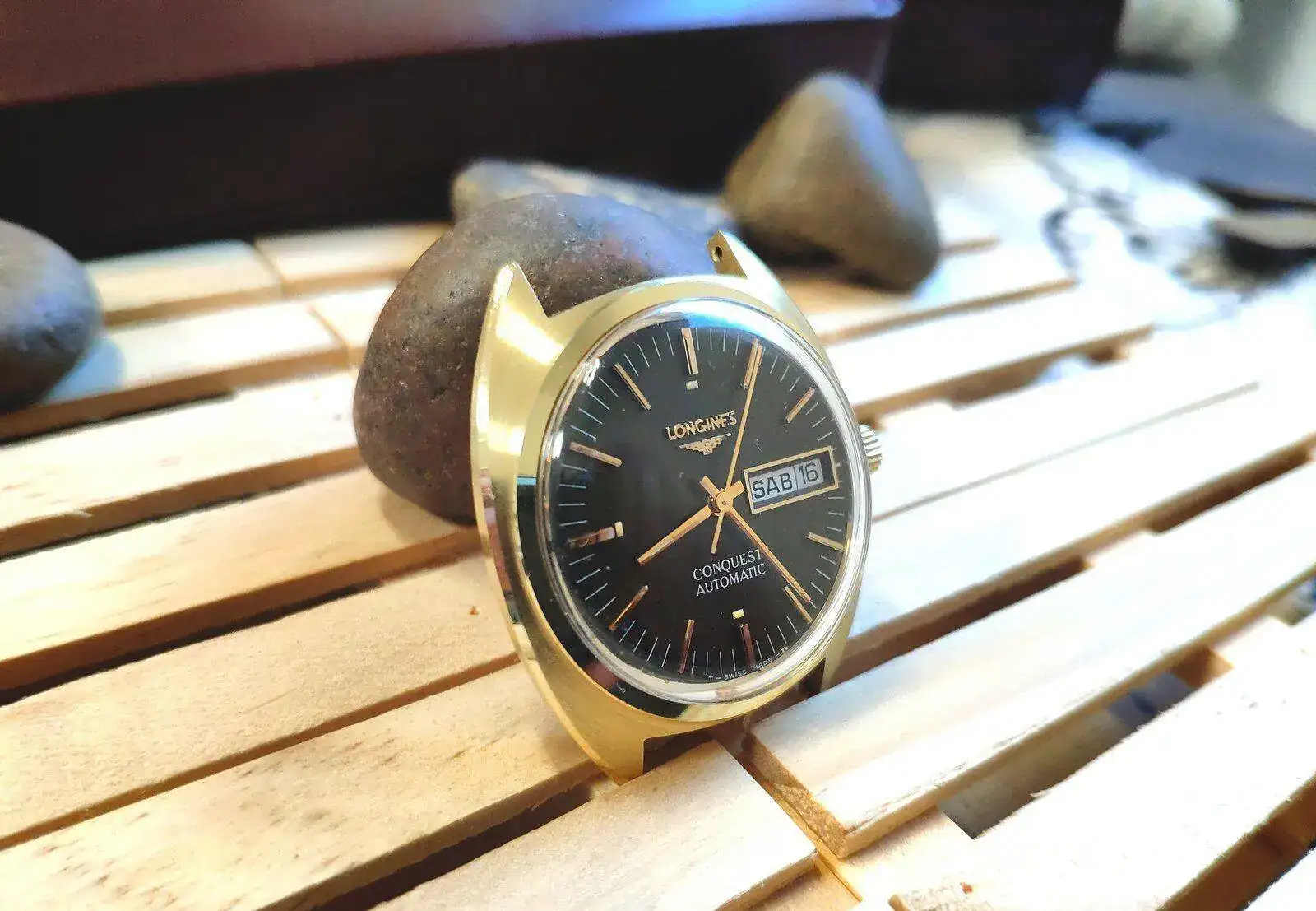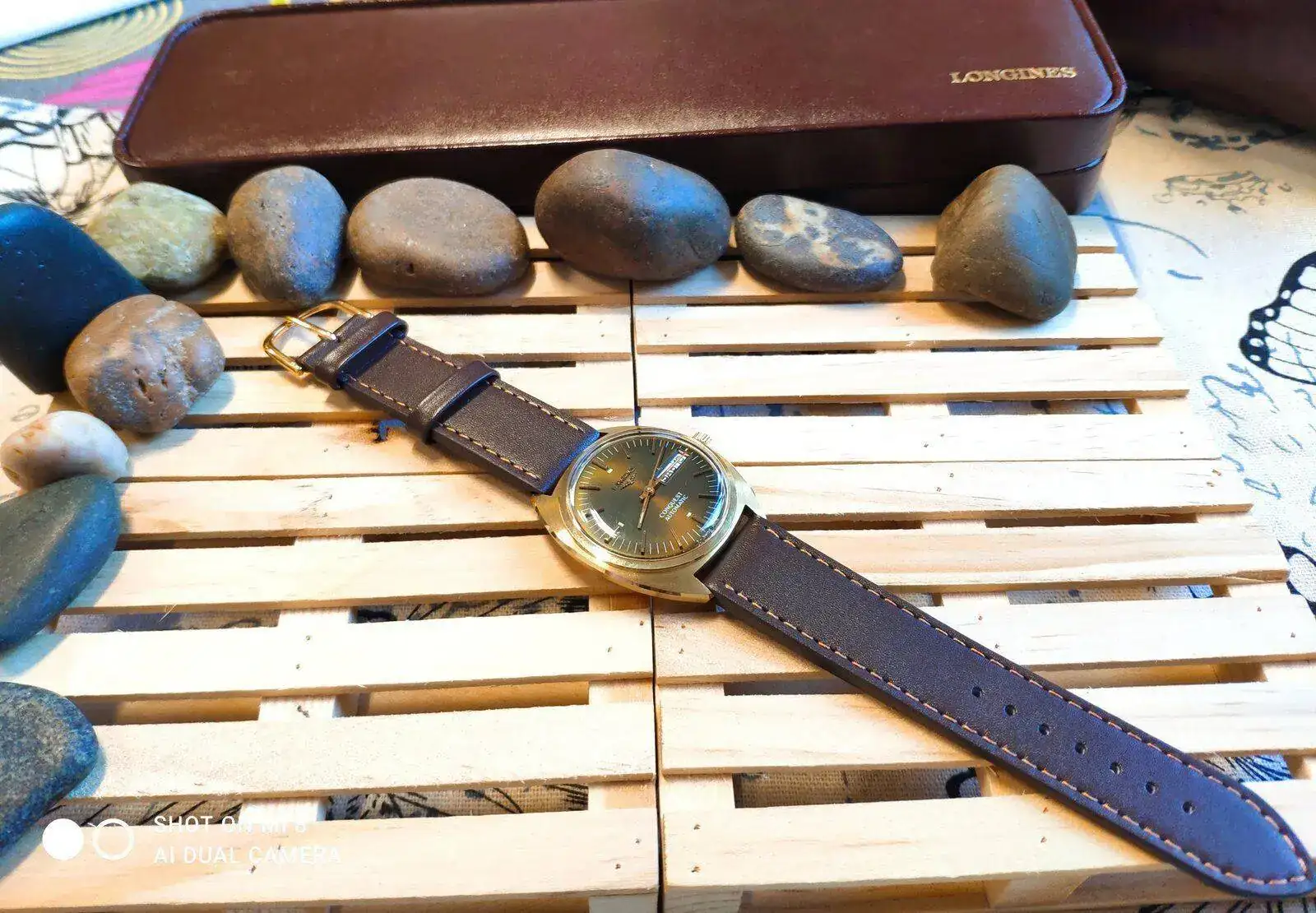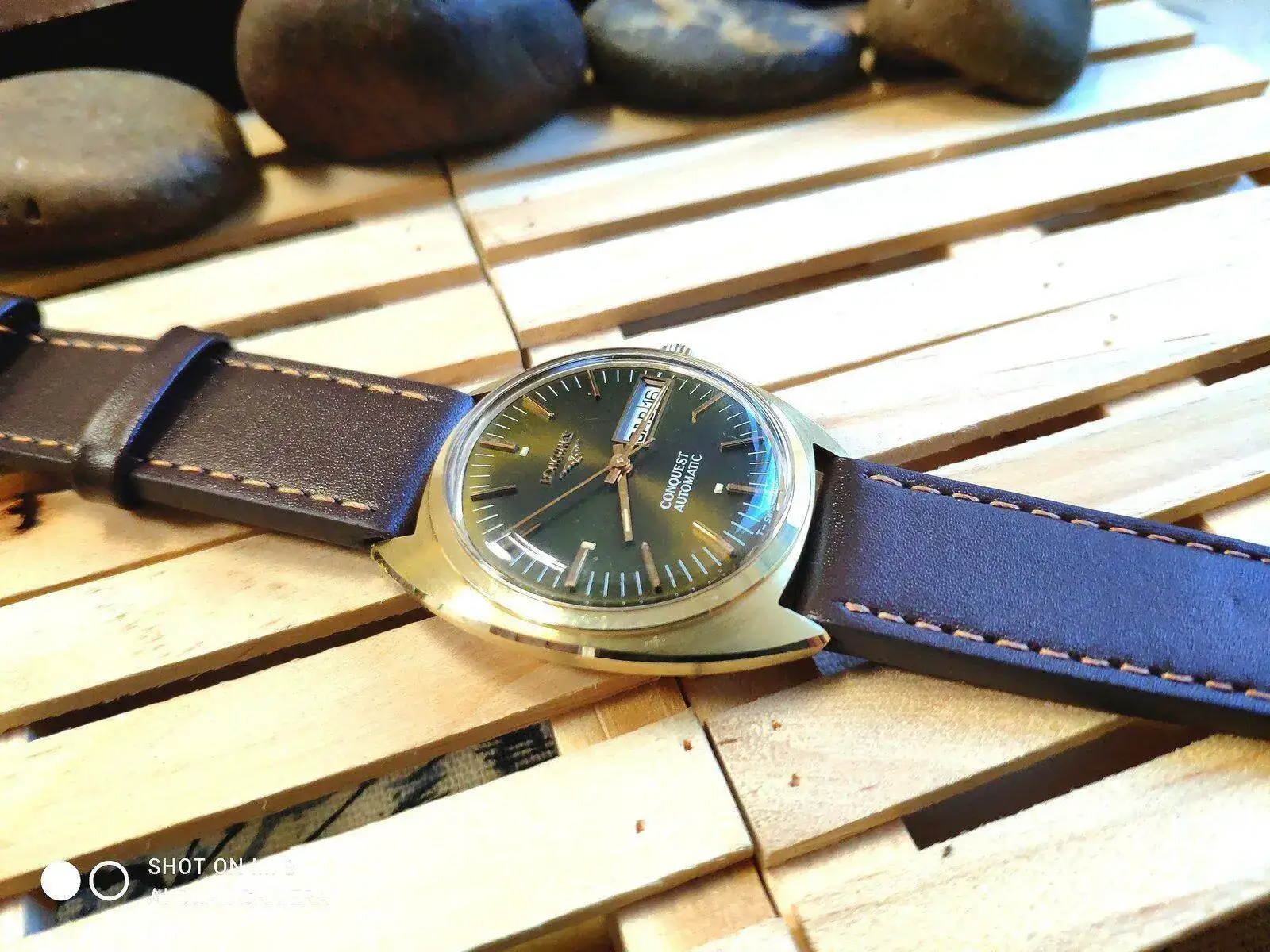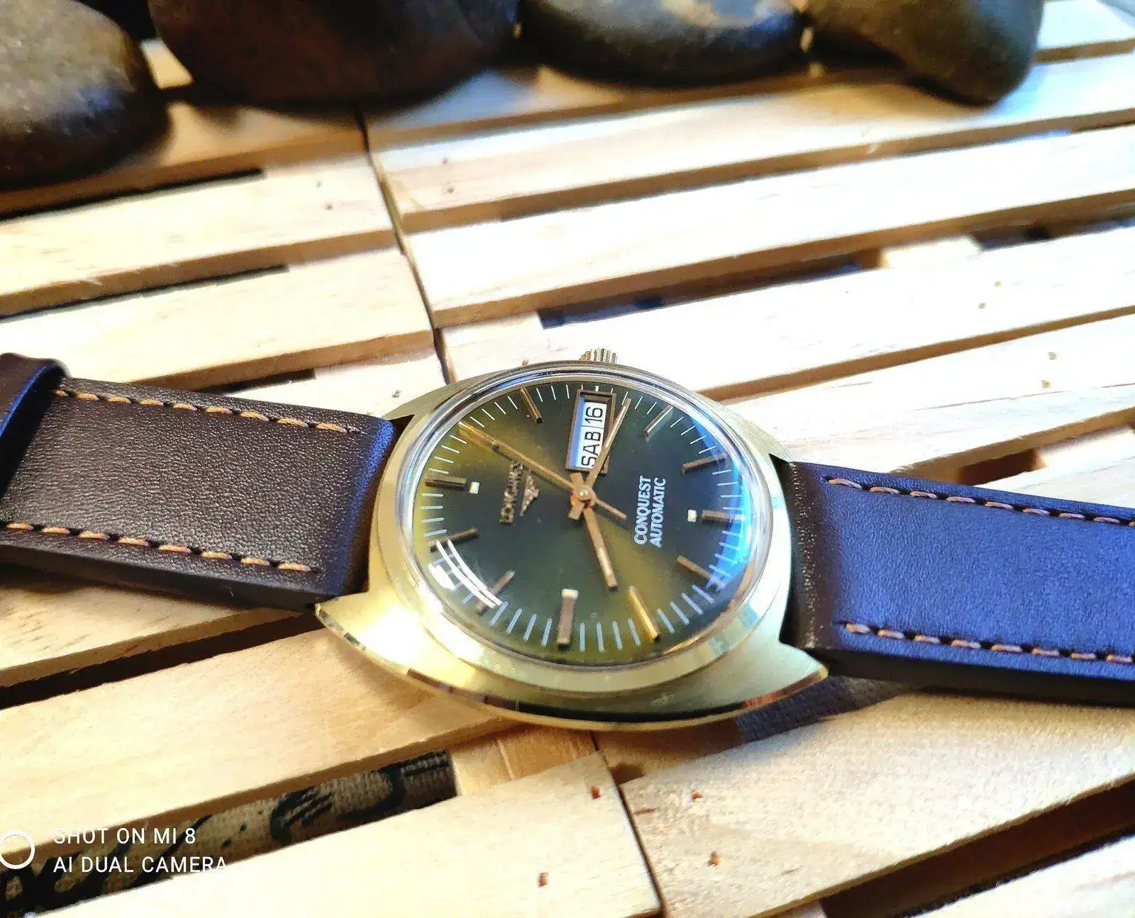 Los reyes llegaron tarde pero llegaron.... La verdad que lo compre para revenderlo, pero después de tenerlo en mis manos y jugar con él y la luz que refleja en el dial que se convierte en un verde esmeralda metalizado tan hermoso que no paro de contemplarlo, no creo que sea ese el color original, el tiempo ha echo el resto del trabajo, en cuanto llegue a casa, lo que hice fue abrirlo para mirar que movimiento llevaba un L636.1 y lo segundo mirar la tapa trasera que no lleva nada, creí que tendría una inscripción, pero no, solo un sello tal vez es de la empresa que lo realizó la fundición del oro y otra inscripción que se observa en las fotos en un pequeño hexágono las letras M c.h, al siguiente día visité una joyería de confianza para ver si en realidad era oro de 18kl y bueno efectivamente es oro 18 y ahora lo pondré en mi caja de relojes de mi colección privada.... Quería compartirlo que por más que buscó no encuentro otro igual ...bueno que sea de oro, en acero hay algunos pero solo con fecha y no día. Perdón por la calidad de las fotos están echa por mí móvil...de mi parte un feliz año a todos.