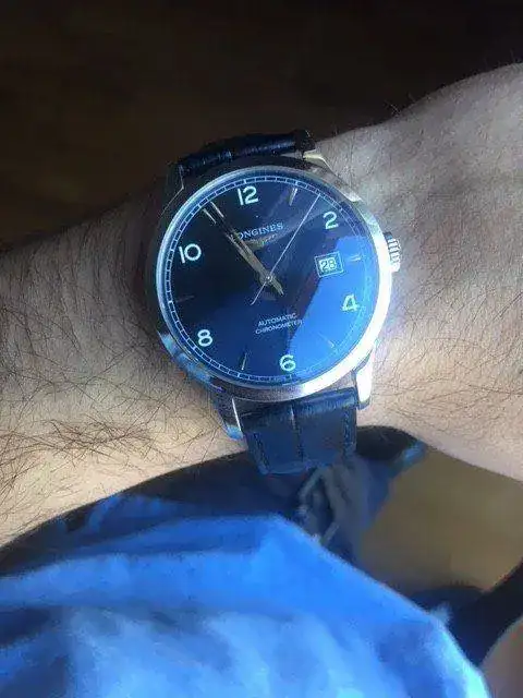 Tengo el Longines Record en azul y estoy encantado con ese color. Es bastante oscuro pero la da mas vida que el negro.