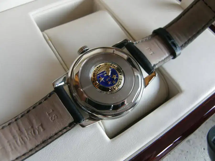 Magnífico y elegante Longines. Un reloj clásico pero que puede llevarse en muchas ocasiones. Tiene una trasera preciosa.Esta en muy buen estado, no presenta marcas, algún pelillo en las partes pulidas a espejo y algo domada la correa de piel. Viene con sus cajas exterior de cartón e interior de madera, y un libreto de instrucciones. La tarjeta de garantía no la tengo pero estaría vencida ya.