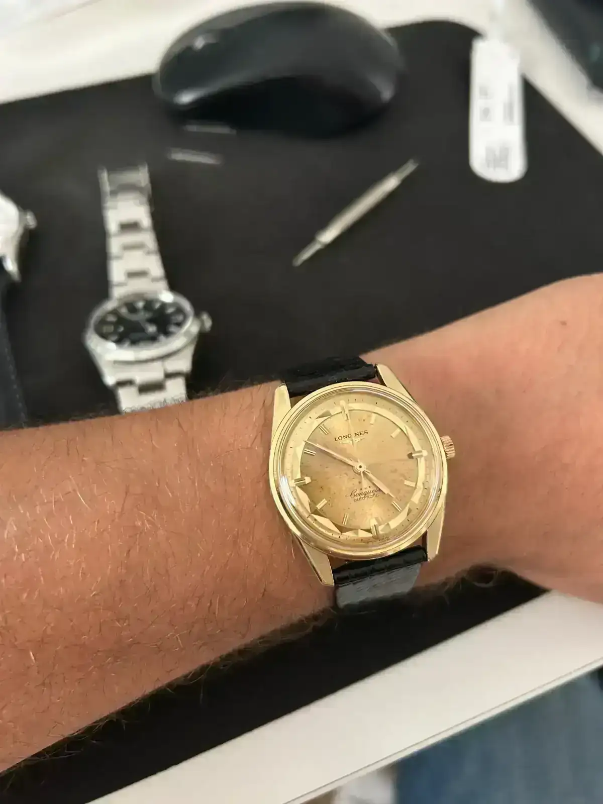 Pues nada, después de unos meses de espera ya os puedo presentar el Longines Conquest 9041 5 full gold de mi abuelo en perfecto funcionamiento.