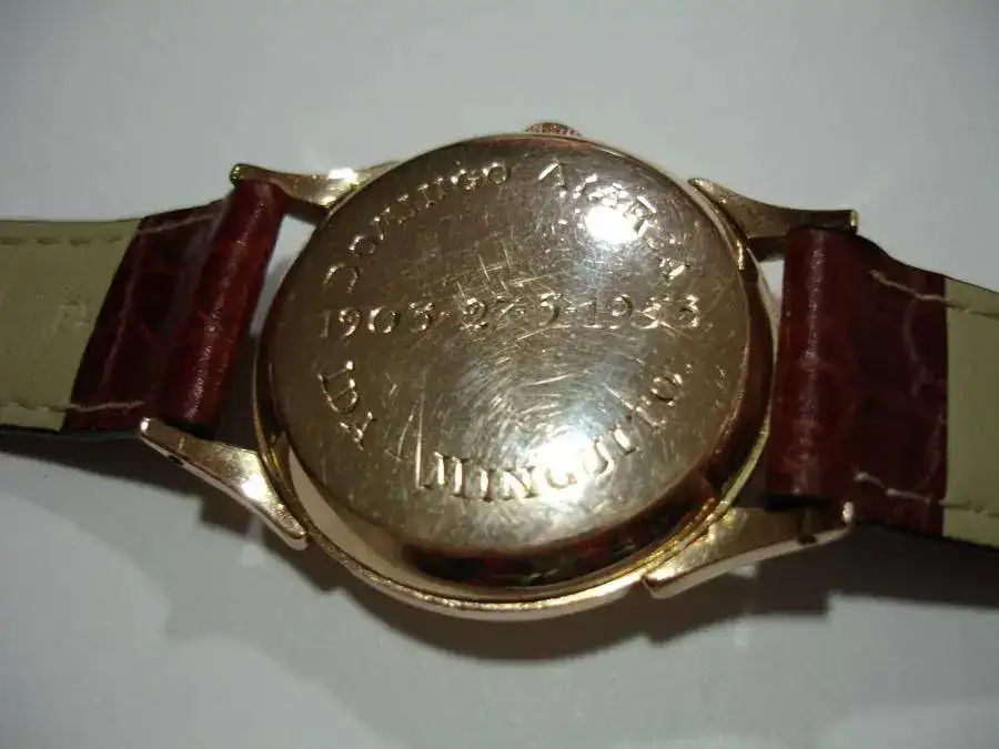 Saco a la venta esté clásico del año 59, más que nada por la inscripcion que tiene en la tapa trasera. Revisado y en perfecto estado de funcionamiento, es de ORO, tiene el cristal en buen estado, una hebilla original y una correa de cuero nueva.