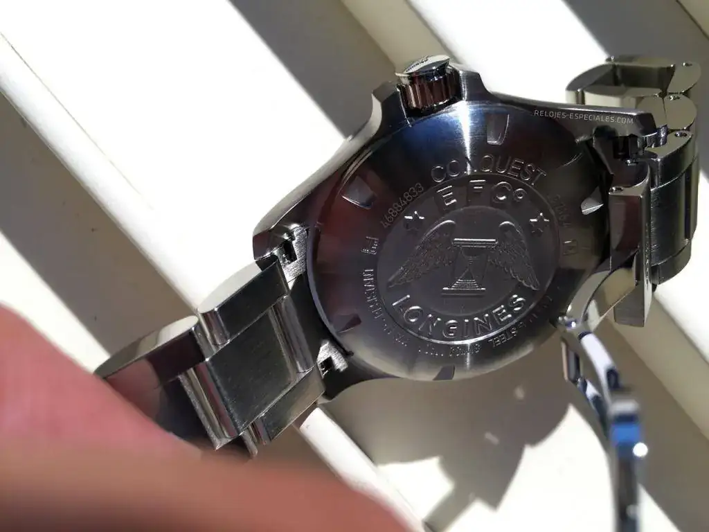 Pero como seguramente para muchos lo más importante son las fotos, ahí van. He de decir que me ha sorprendido la comodidad del modelo, no porque lo esperase incómodo, sino porque precisamente lo era más de lo que esperaba: siendo de acero no se hace nada pesado, probablemente debido a las proporciones de la caja. ¡Hasta llegué a pensar que era de titanio! Buenos acabados, calendario perpetuo y una precisión imbatible hasta para los cuarzos termocompensados: más/menos 5 segundos ¡al año! ¿Qué más se puede pedir por un precio alrededor de 900 € en una marca reputada como Longines?