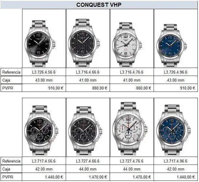 Longines mantiene con el cuarzo una historia llena de innovaciones y proezas técnicas. En 1954, la marca desarrolla un primer reloj de cuarzo que pronto batirá una impresionante serie de records de precisión en el Observatorio de Neuchâtel y equipará el emblemático Chronocinégines, instrumento precursor en el ámbito del cronometraje, ya que proporciona a los jueces una película que incluye una serie de tomas a 1/100° de segundo para que puedan seguir el movimiento de los atletas al pasar por la línea de meta. Las competencias tecnológicas llevan a Longines a presentar en 1969 el “Ultra-Quartz”, primer reloj de pulsera de cuarzo concebido para ser producido en serie. En 1984, Longines dio un enorme paso adelante al presentar el calibre de cuarzo que equipa al Conquest V.H.P., movimiento que alcanzó un record de precisión en aquella época.