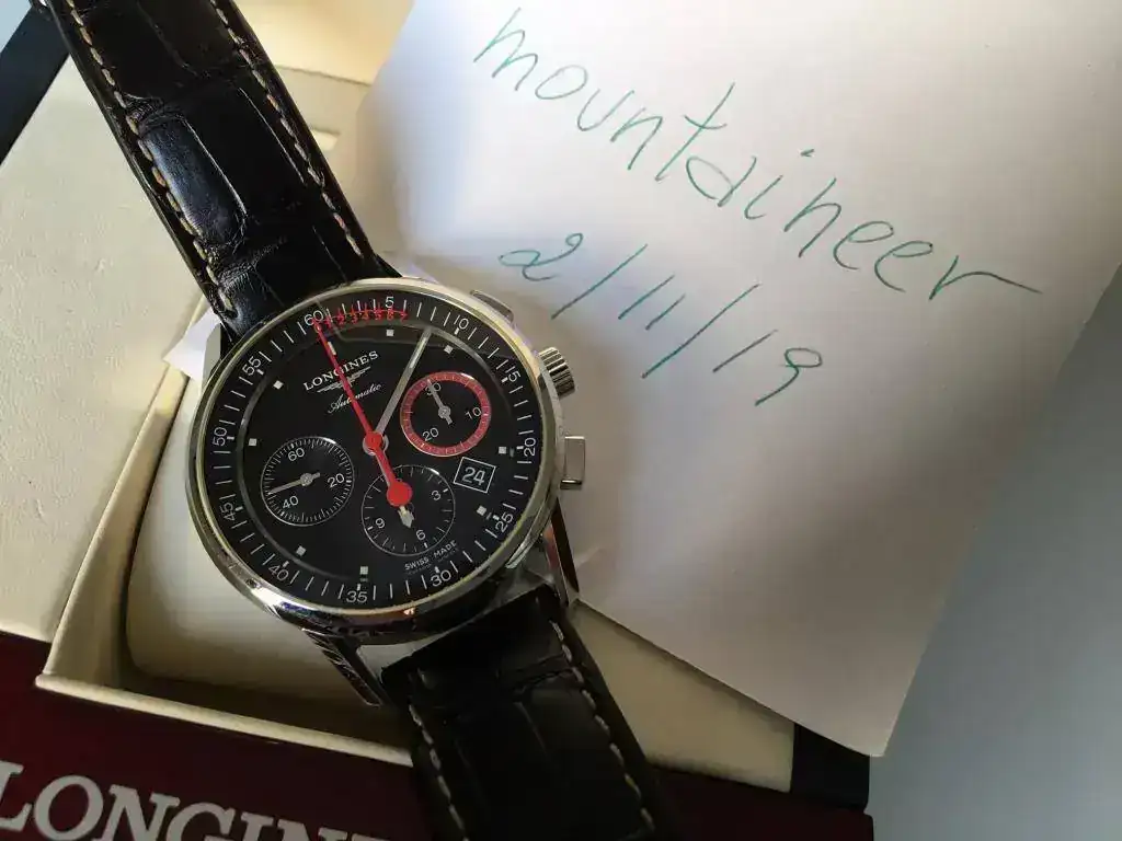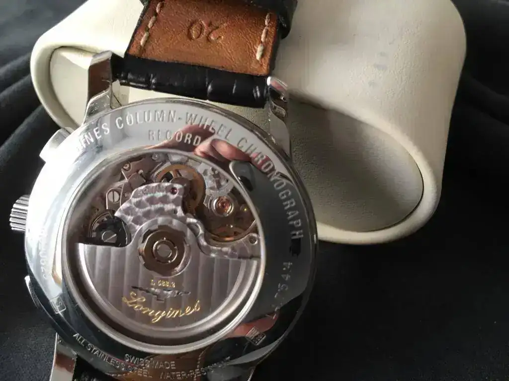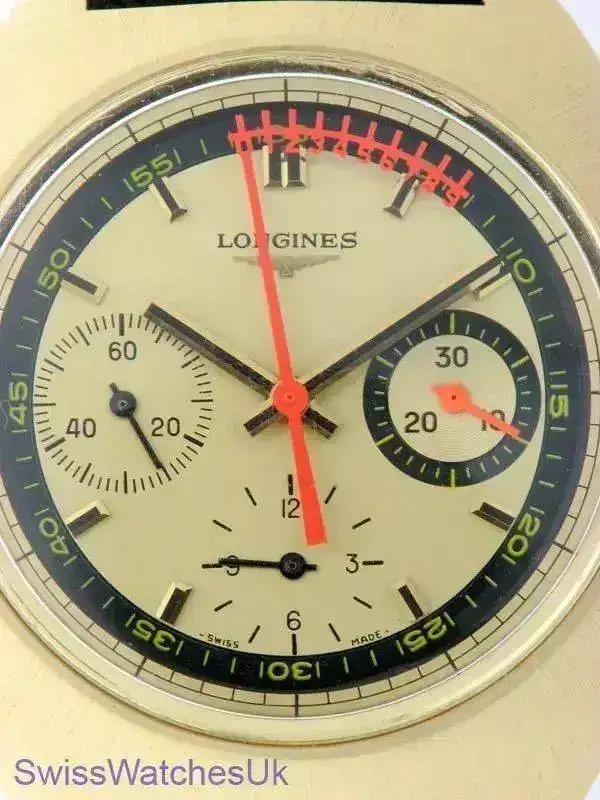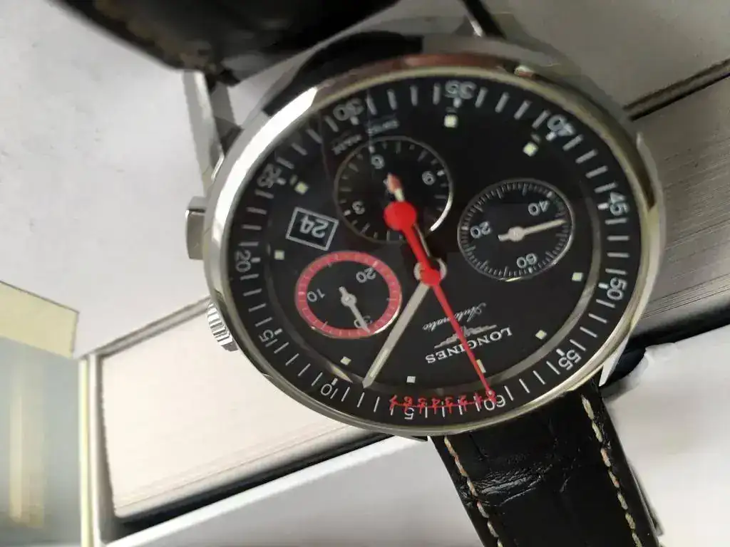 Hola, vendo este reloj cronógrafo Longines con movimiento de Rueda de Pilares (Column Wheel) en perfecto estado, excepto algún pelillo en el lateral. Marcha perfecta y, como detalle, una escala Vernier incorporada a la aguja del segundero del cronógrafo, que permite medir hasta un octavo de segundo del tiempo registrado.