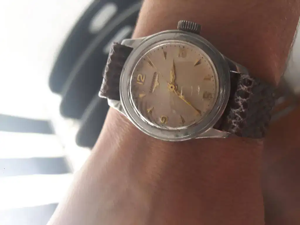 Vendo este longines, creo a buen precio. La máquina está en buen estado y funciona correctamente. A destacar que la esfera se mueve, posiblemente esté mal sujeta y necesite bata. La mejor descripción, las fotos. Dudas por privado. Muchas gracias.