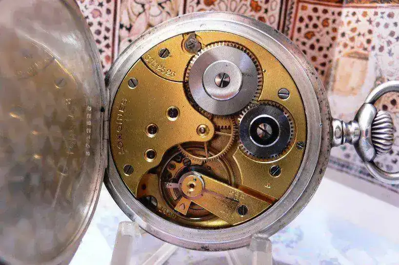 Tipo Cazador, reloj del bolsillo en plata con calibre L20A, el primer diseño hecho por Longines.[/FONT]