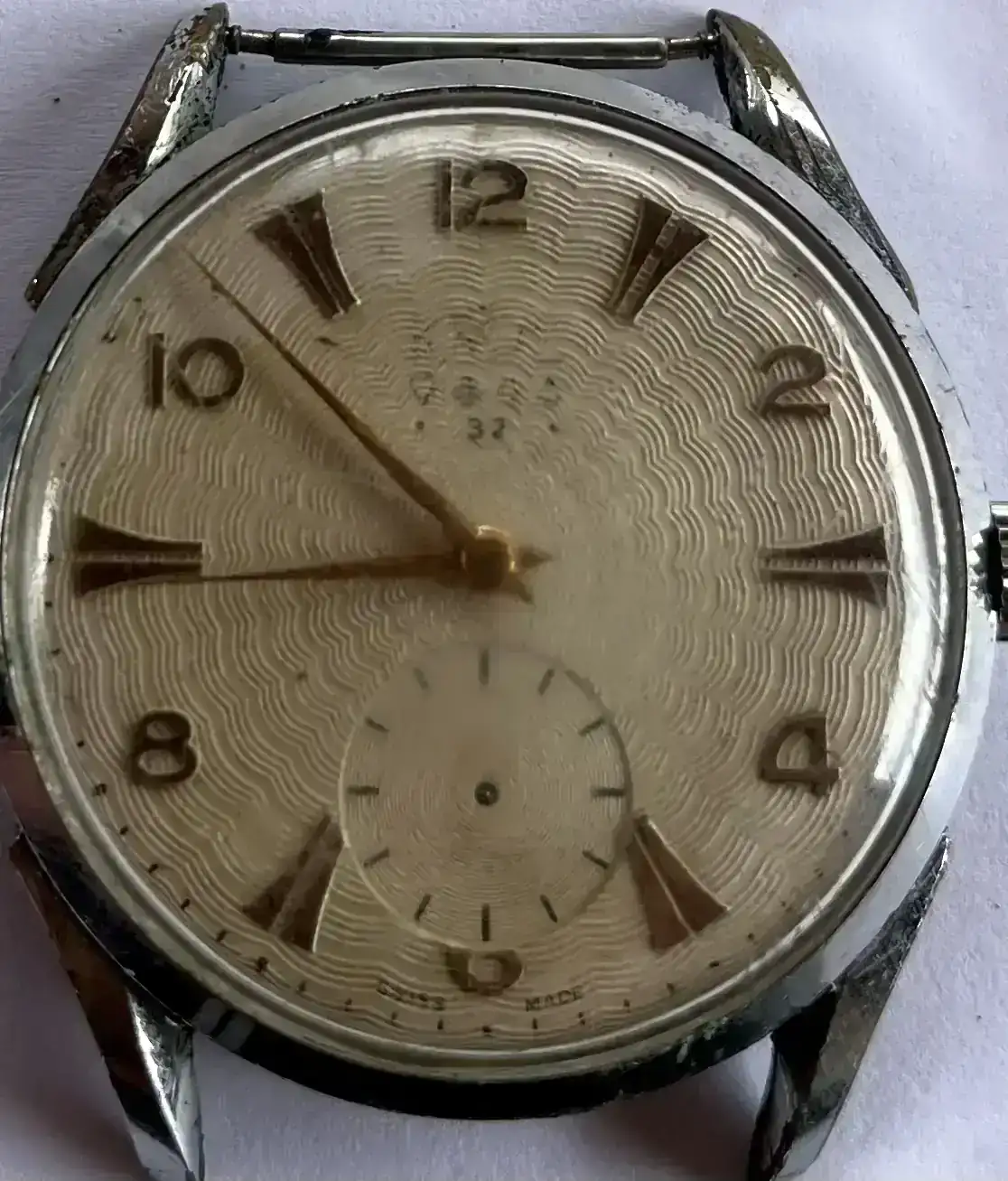Cierto, si el reloj salió de Cuba es muy probable que se montase en una caja de un joyero local, esto no solo lo hacía Cuervo y Sobrinos (la más conocida) era práctica general con ciertas marcas suizas.Vamos a ver Longines en esa época a los países del este y norteamericanos mandaba habitualmente la máquina y ellos se encargan de fabricar cajas con los cajistas del país , normales en alpaca para este tipo de reloj de trinchera ,pero está es cromada y más actual.Creo qué es una boda .pero me puedo equivocar