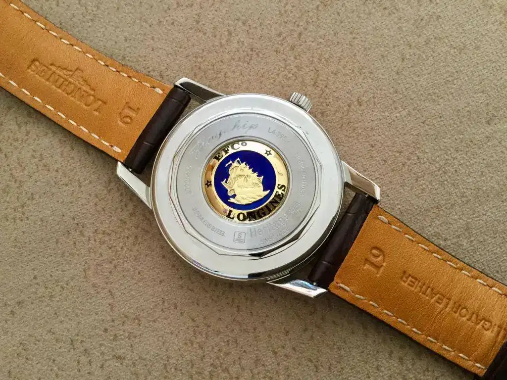 [FONT=.SF UI Text][FONT=.SFUIText]Cabe añadir que las agujas son de tipo dauphine y que la trasera del reloj está bellamente decorada con un medallón incrustado en el centro de la tapa, con una carabela dorada sobre fondo circular azul y éste rodeado de un anillo dorado con la inscripción "*EFCo* LONGINES". Alrededor de medallón, pero ya en la tapa, están las habituales inscripciones (modelo, número de serie,etc.). También hay que añadir que el movimiento automático L615 es la versión de Longines del ETA 2895/2, movimiento automático introducido en 1999, de 27 rubíes, con 28.800 A/h, con 42 h de reserva de marcha, 25,6 mm de diámetro y 4,35 mm de altura. Es la variante del excelente ETA 2892, con segundero pequeño a las 6 y fecha. [/FONT][/FONT]