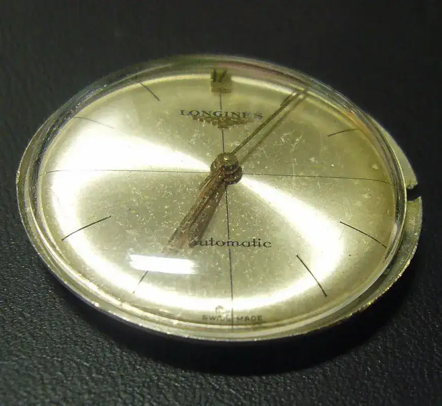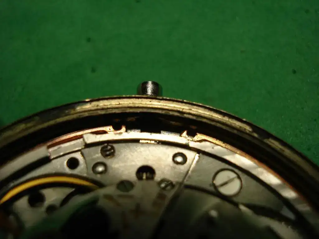 La esfera y el plexi también tenía restos de pegamento, que supongo sería por un mal cambio de plexi, porque por el estado impoluto de los tornillos se ve que nunca lo han desmontado. Sólo el tornillo del tiret está tocado....