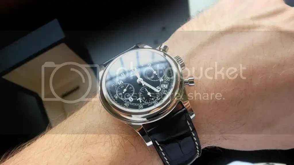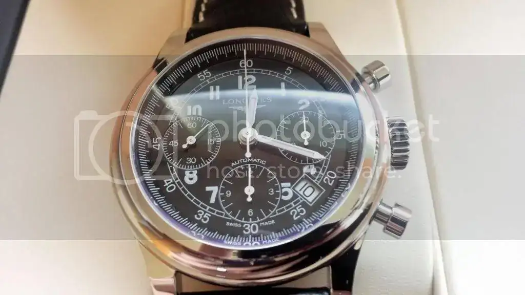 Longines, es una marca que me gusta mucho porque por su relación precio, ofrece una calidad muy alta, además de ese punto añejo de diseño clásico, al instante, comparada con otras marcas de su rango de precio, creo que ofrece mucho más, aparte del pedigrí que siempre ha tenido como marca (aunque sea venida a menos en las últimas décadas). Los acabados como digo son muy buenos y los de la correa también son espectaculares. La correa es negra de aligator. Las garras de la caja son muy esbeltas y pronunciadas, tienen mucha personalidad en el conjuntos del reloj. Los números árabes vienen con superluminova, por lo que por la noche cuando están cargados, este crono tan vintage se ve bastante más moderno