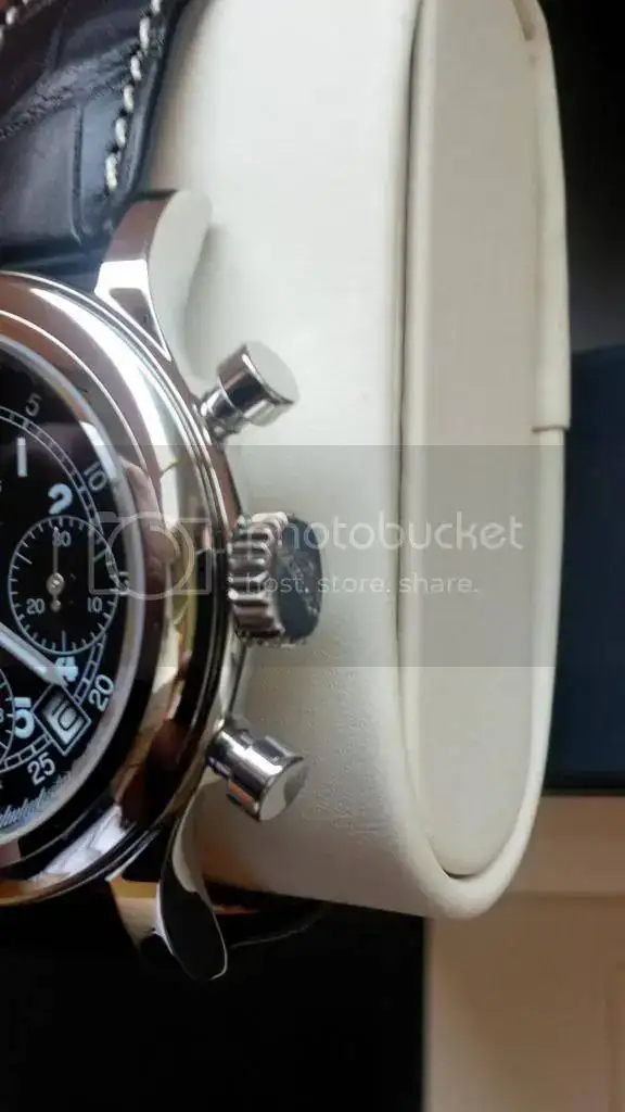 ) y sus otros dos pulsadores típicos, el accionador del crono y el reseteador abajo. Son de un estilo vintage muy pronunciado y es uno de los detalles que más me gustan del reloj, se ven muy retros y de los 50