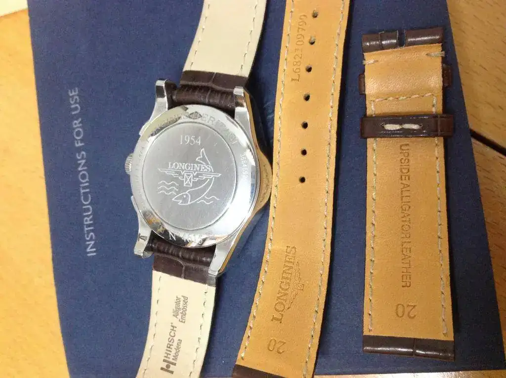 La correa original de cocodrilo Longines está sin uso, ya que las poquísimas puestas han sido con una Hirsch módena, que incluyo en el precio.