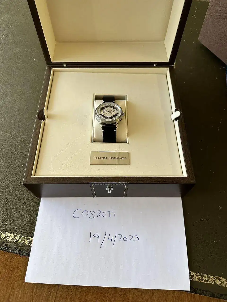 Por la entrada de un nuevo reloj en mi colección me veo obligado a vender una de mis últimas adquisiciones, el Longines Heritage crono denominado Tuxedo. El reloj fue comprado por mi el pasado 23/11/2022 en CO nacional, por lo que le queda toda la garantía por delante y por supuesto, se encuentra en un estado de absoluto reestreno ya que me lo habré puesto cuatro o cinco veces. Además de toda la dotación entregó también con el reloj armis Longines sin estrenar realizado para este modelo y que está valorado en mas de 400 euros. Recordemos que el PVP de este reloj son 3.650 euros algo que habría que añadir el armis sin estrenar (400 euros), y yo lo vendo por tan sólo 2.490 euros con el envío incluido por MRW a península. Una auténtica oportunidad de comprar un reloj prácticamente nuevo a un precio muy contenido.