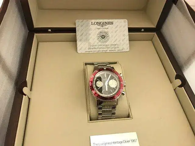 Fruto de una compra de CRI en concesionario español y con fecha 27/12/2016. Pongo a la venta Reloj sin estrenar Longines Heritage Diver 1967 Crono de rueda de pilares, resistente al agua 300 m.