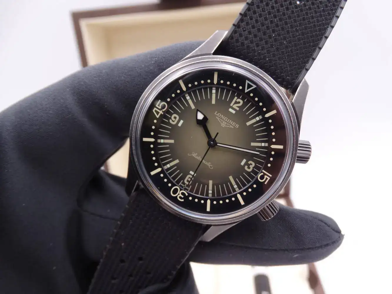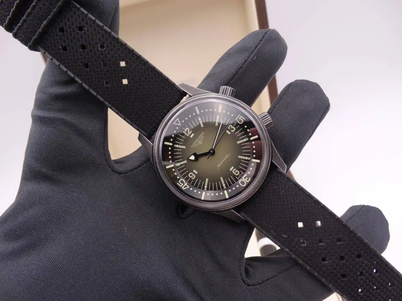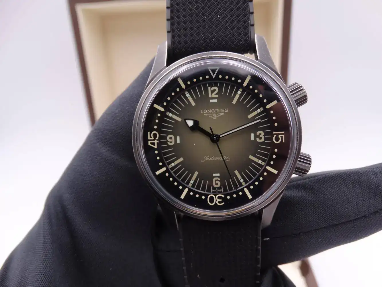 Un clásico de la casa Longines es sin lugar a dudas el Legend Diver; un reloj con caja tipo supercompressor que incluso con una amplia distancia entre asas, lo convierte en un reloj impresionante en muñeca y francamente cómodo. La Edición Limitada España con 163 piezas es un acierto absoluto, no solamente por la caja de acero envejecida, sino también por rememorar al mas apreciado de todos al no incluir la fecha, y sin olvidar su maravillosa esfera verde degradada.
