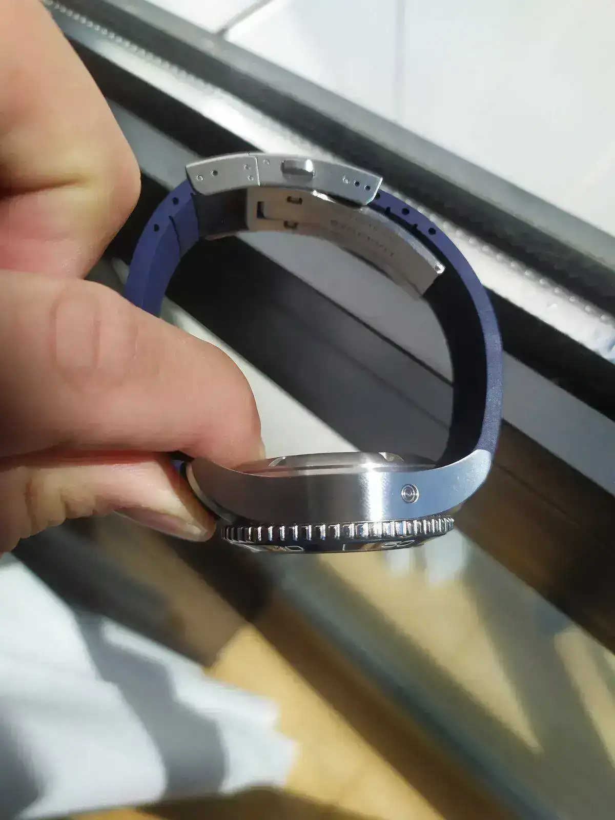 Tras la entrada de un peso pesado por las normas de mi casa sale uno q me da mucha pena pq ha sido un gran descubrimiento pero no puede quedarse,son las normas,el q lo compre lo disfrutara en verano q es su medio y en el agua,hasta ahora rotado con otros y con marcas en cierre pero no veo nada graves,el caucho cortado,ajustado a muñeca de 18 mm y le quedan dos puntosmas para ampliar,vamos,o eres hulk o te sirve je je...cualquier cosa mp...por cierto nl cambios porfa que es para compensar una compra gorda