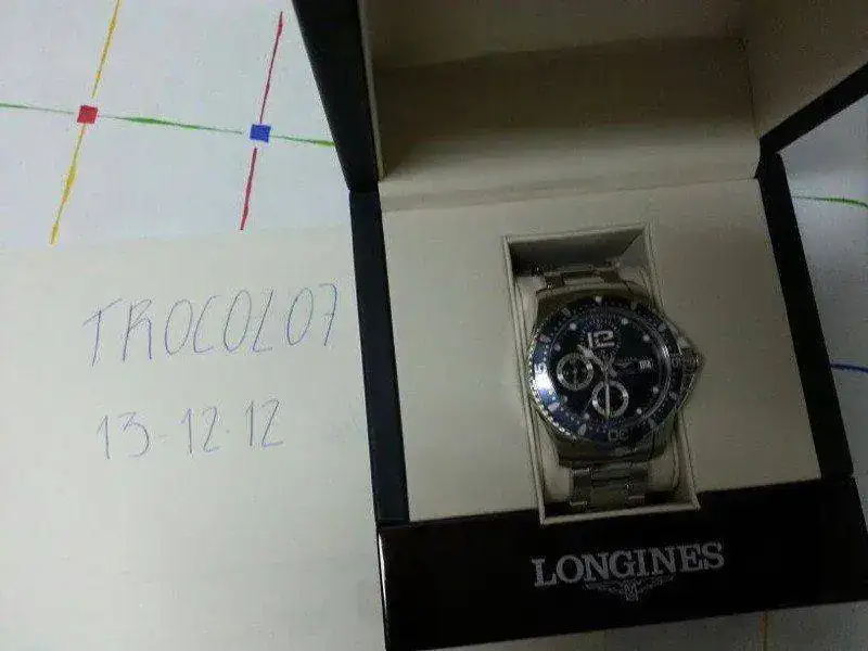 Pues eso compañeros, vengo un Longines Hydroconquest en perfecto estado, apenas dos meses y con garantía de sobra por delante. El aspecto es espectacular, vamos, de reestreno absoluto. Las características de sobra las sabemos, pero más o menos os diré que es un calibre 7750, fiable 100%, cristal de zafiro con tratamiento antirreflejos. caja de acero inoxidable de 41 mm, esfera y bisel azul. Fondo ciego roscado con logo de la casa, muy bonito. Y poco más puedo decir. Viene con su set completo, caja, manuales y garantía y eslabones sobrantes. El precio que pongo es de 950 euros con portes incluidos sin asegurar por Nacex 24H. No quiero cambios, necesito el money para seguir haciendo hucha.
