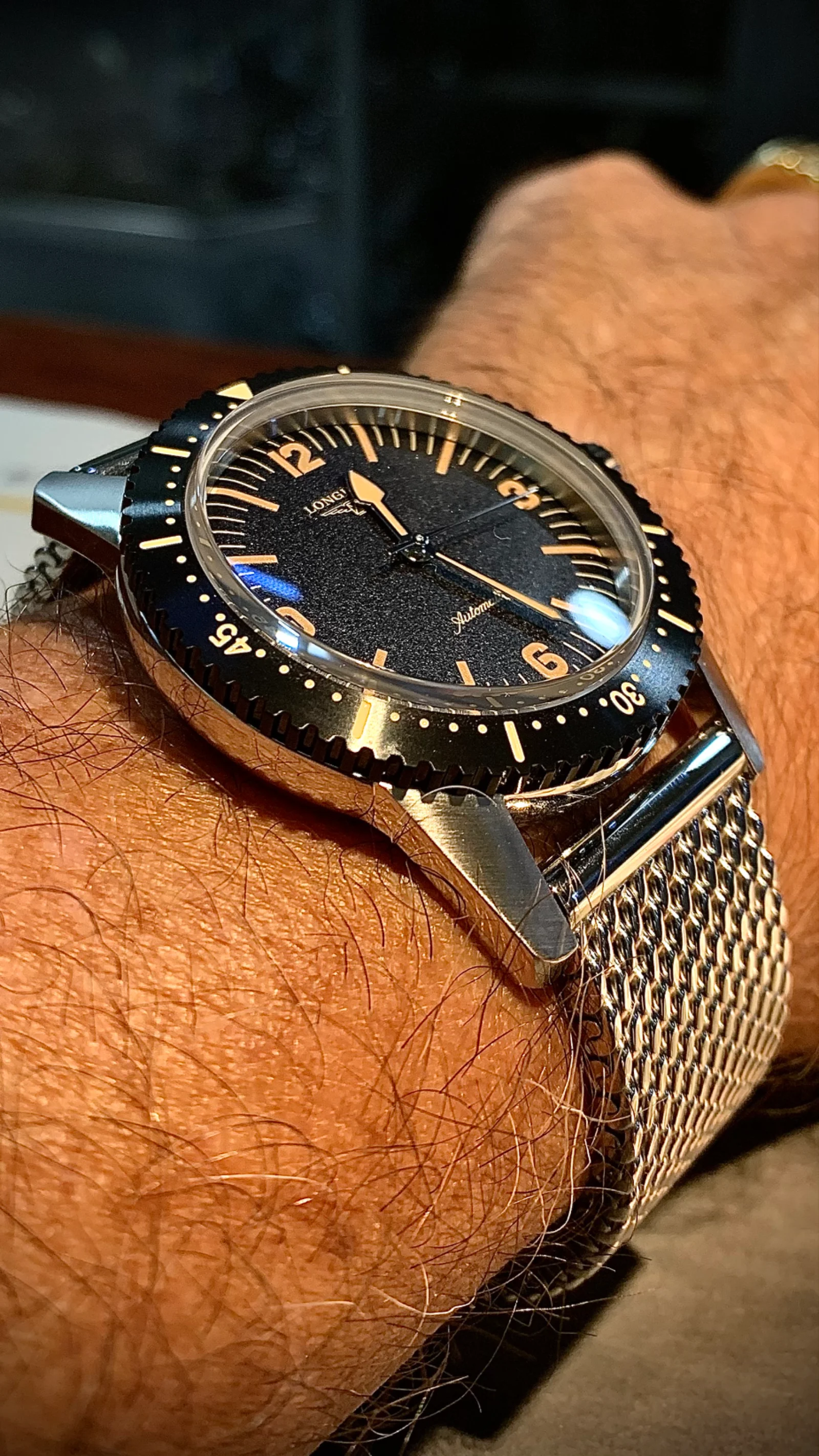 Pues mi Longines Skin Diver lleva esa misma milanesa de serie, además de ser muy cómoda, fácil ajuste (EMO), y de excelente calidad:A mí me gusta con milanesa, pero no entiendo una milanesa sin cierre de milanesa. Lo de poner eslabones cosméticos en los extremos y luego un cierre, aun con micro-ajuste sin herramientas, me parece matar moscas a cañonazos y perder precisamente las ventajas de la misma.